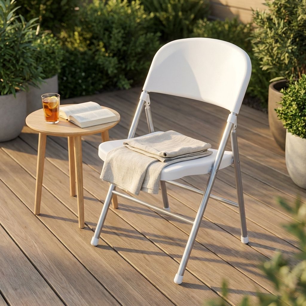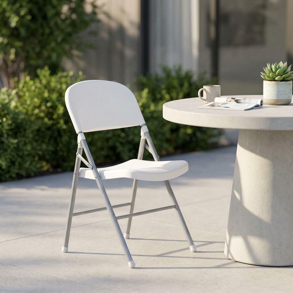 Sedia pieghevole con struttura in metallo e seduta in polipropilene, pratica e resistente. Si apre e si richiude facilmente, ideale per ottimizzare gli spazi. Unisce leggerezza, stabilità ed essenzialità per un utilizzo versatile.
