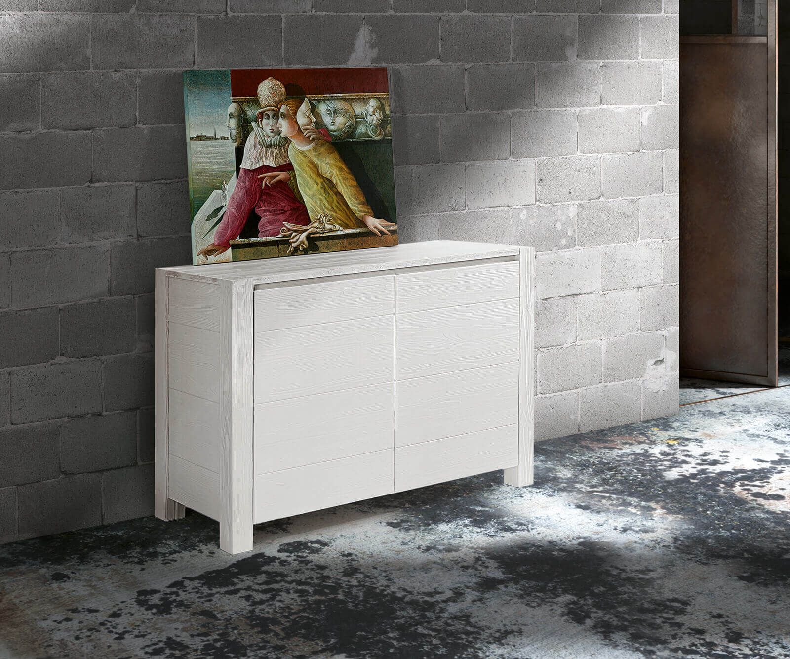 Trasforma il tuo salotto con la credenza moderna Chanel: spaziosa ma compatta, dotata di ante grandi, realizzata in abete spazzolato bianco. Il suo design minimalista si adatta a qualsiasi zona living, donando una bellezza unica e semplice.