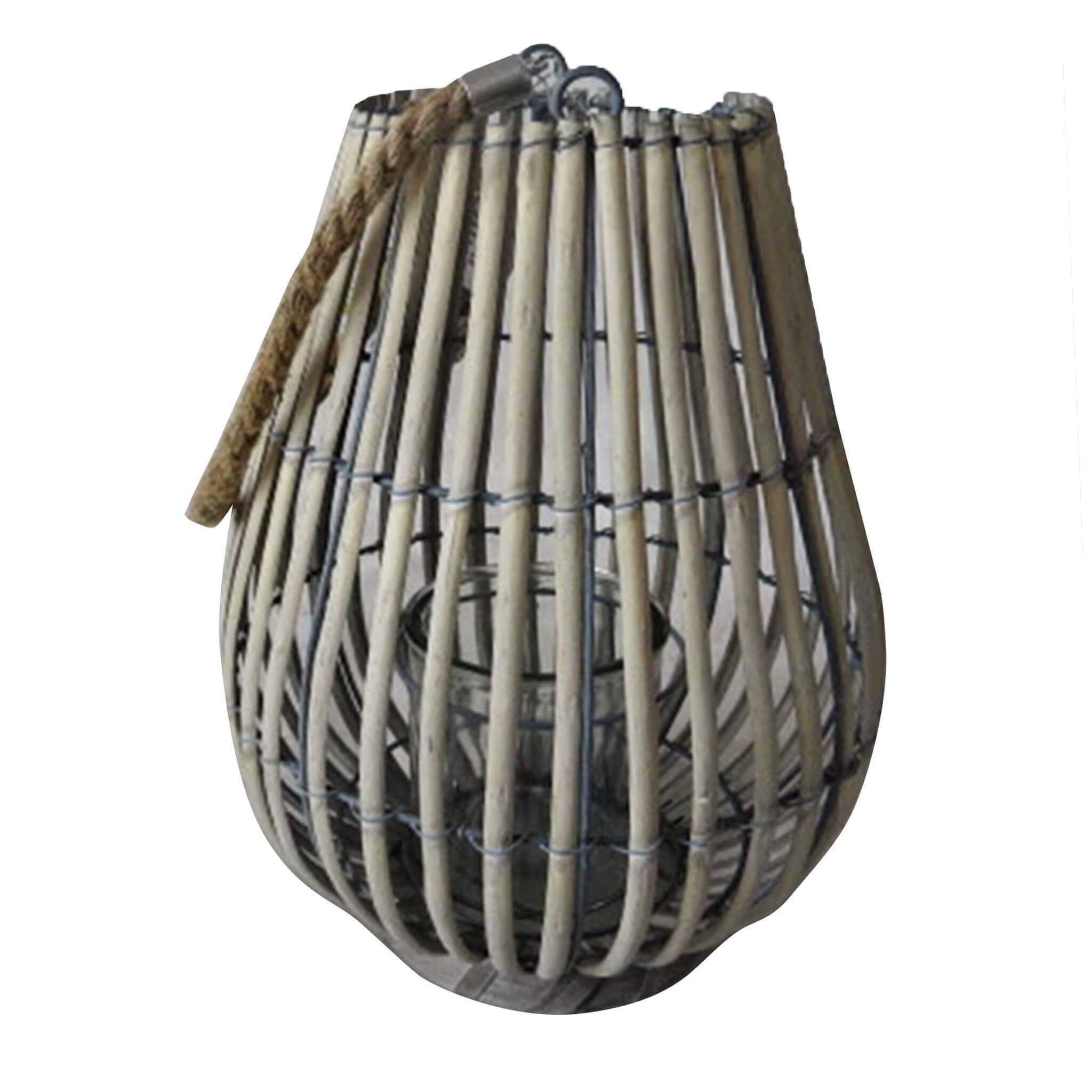 Aggiungi un tocco di fascino rustico alla tua casa con questa splendida lanterna di vimini CHANTAL. Il suo design a bulbo intrecciato in vimini porterà un po' di atmosfera tropicale alle tue pareti domestiche. Completa di un inserto in vetro per garantire la sicurezza e mantenere accesa la fiamma, questa lanterna creerà una luce soffusa e suggestiva nella tua casa. Potrai usarla come soprammobile o appenderla grazie alla sua maniglia in corda. Con la sua struttura in legno e i dettagli in vimini, darà un tocco rustico o tropicale al tuo interno. Che aspetti? Metti un tocco di romanticismo nella tua casa con questa bellissima lanterna!