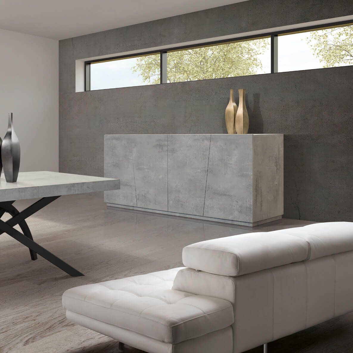 La madia CHRONOS è dipsonibile in colore bianco, antracite o cemento