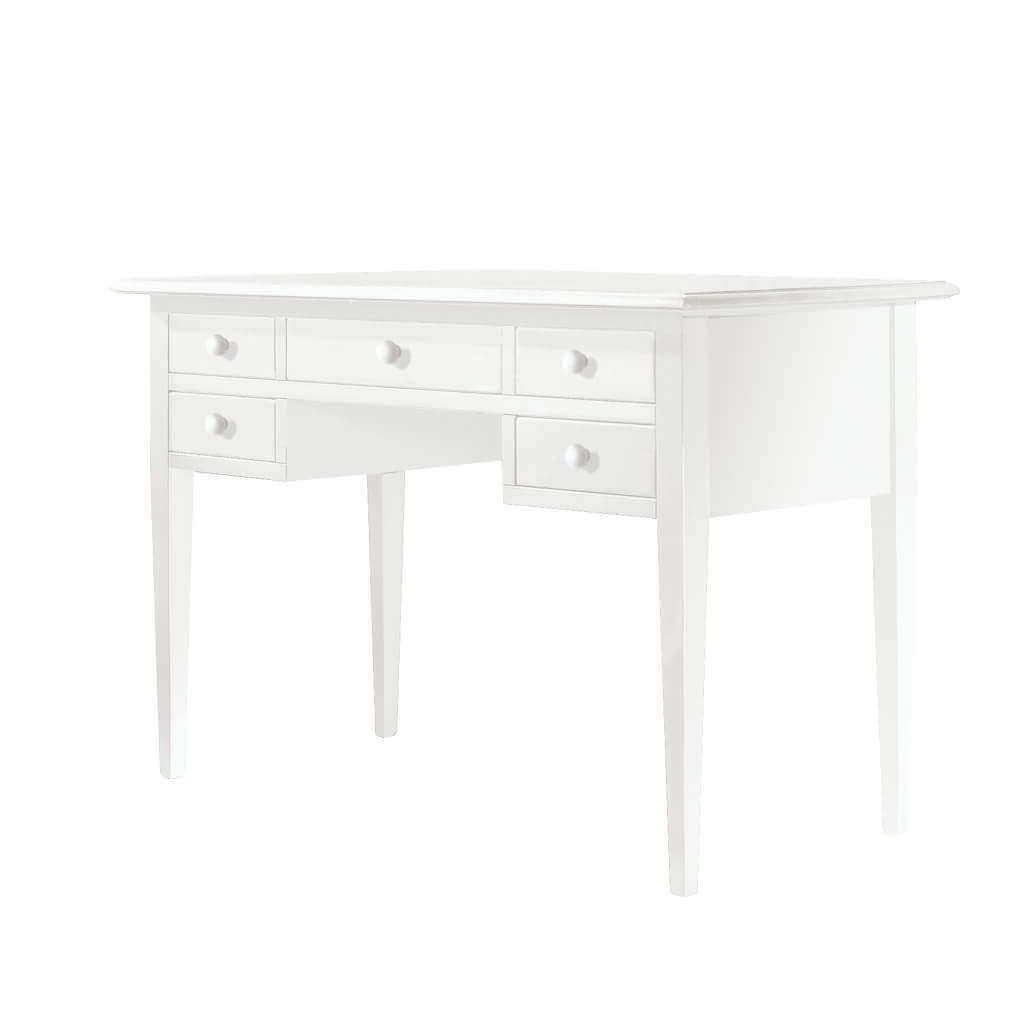 "Vuoi arredare il tuo studio in modo pratico e solido? Allora il nostro scrittoio Cornell è perfetto per te! Con i suoi 5 cassetti e il design classico italiano, questo scrittoio realizzato con legno massello, legno impiallacciato e legno truciolato laccato bianco ti offrirà non solo stile, ma anche solidità e durata a un ottimo rapporto qualità/prezzo."