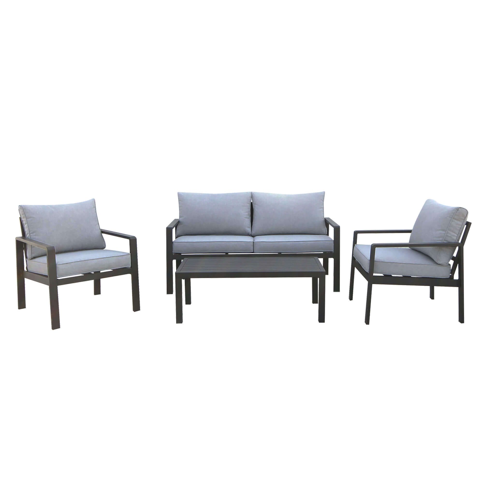 CORONA è un salotto 5 posti totalmente in alluminio con cuscini sfoderabili disponibile in 2 varinti colori bianco e antracite