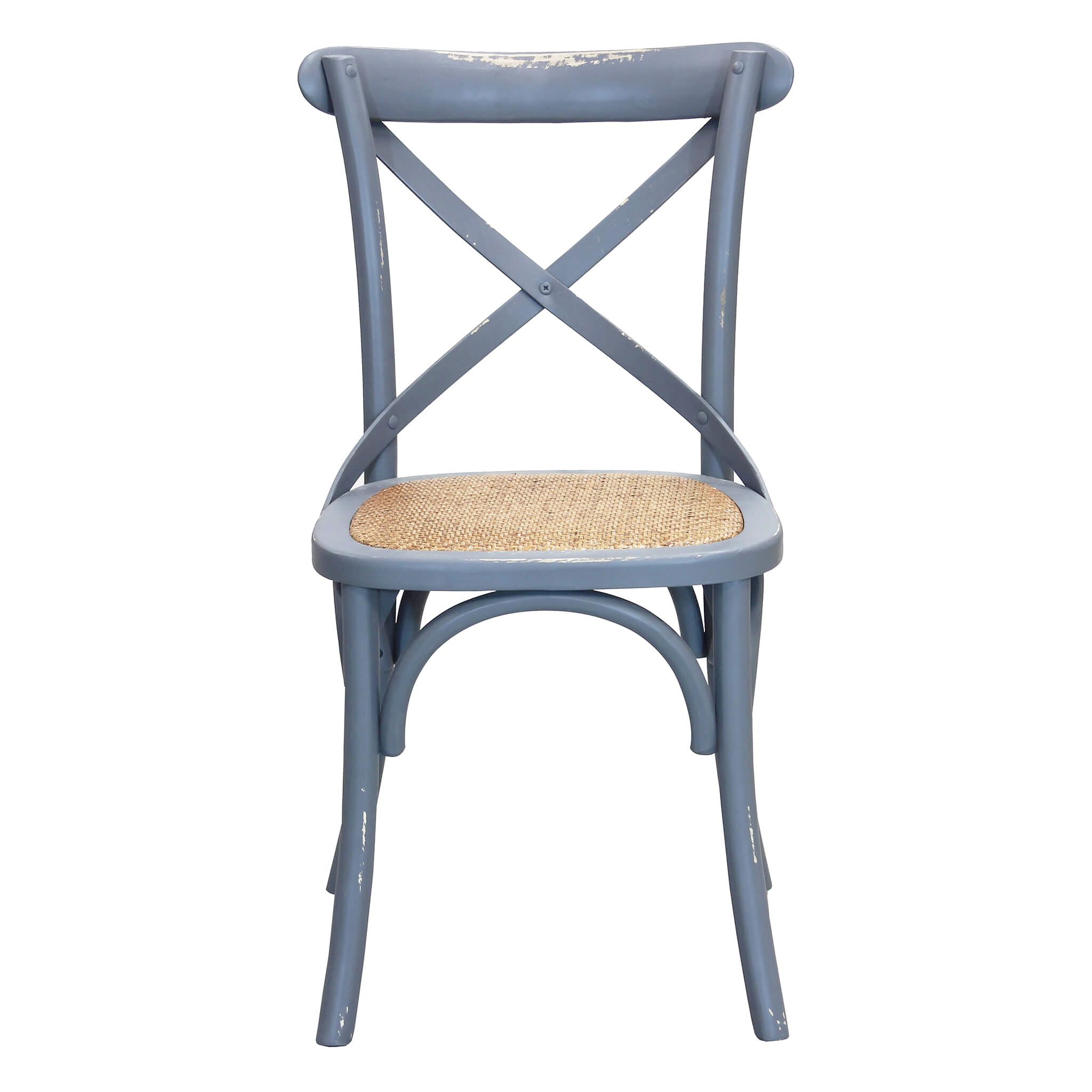 La sedia CROSS è disponibile in colore azzurro, marrone, bianco, grigio, verde