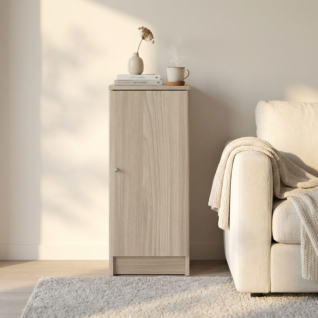 Il CUB è un mobiletto portaoggetti ad un'anta che offre un'eleganza sobria e moderna. La forma compatta lo rendono perfetto per un utilizzo versatile in varie stanze della casa. Disponibile nelle varianti Bianco liscio, Eucalipto ed olmo chiaro.
