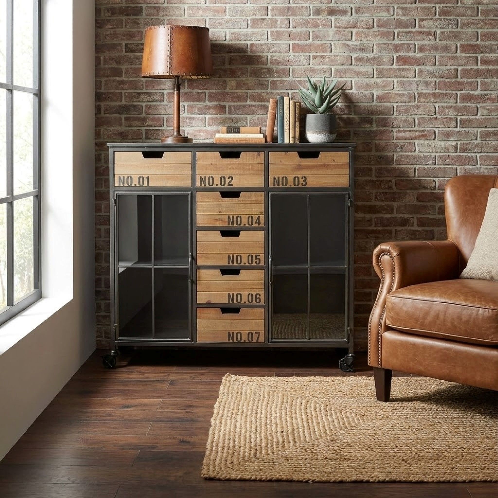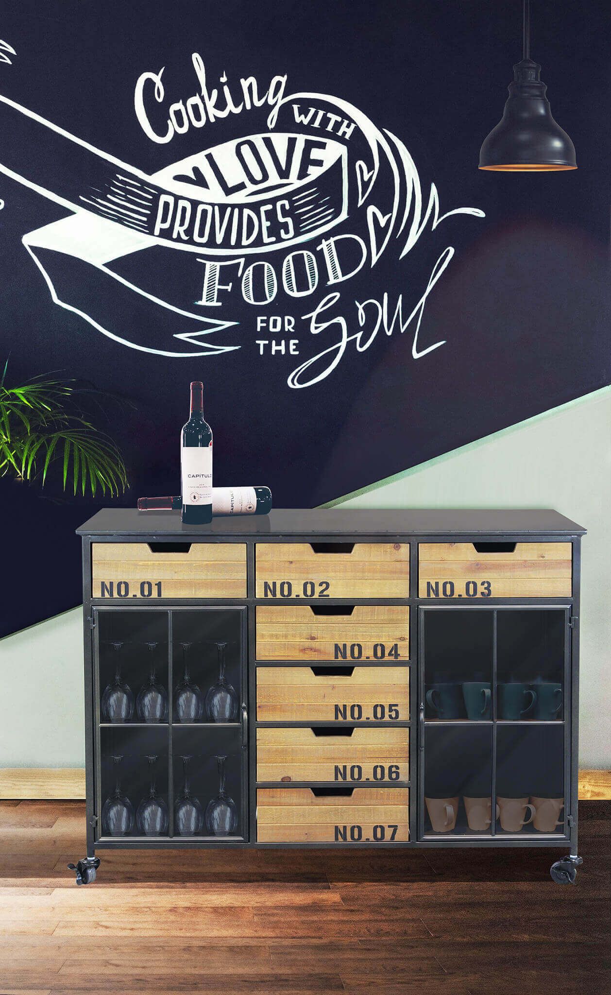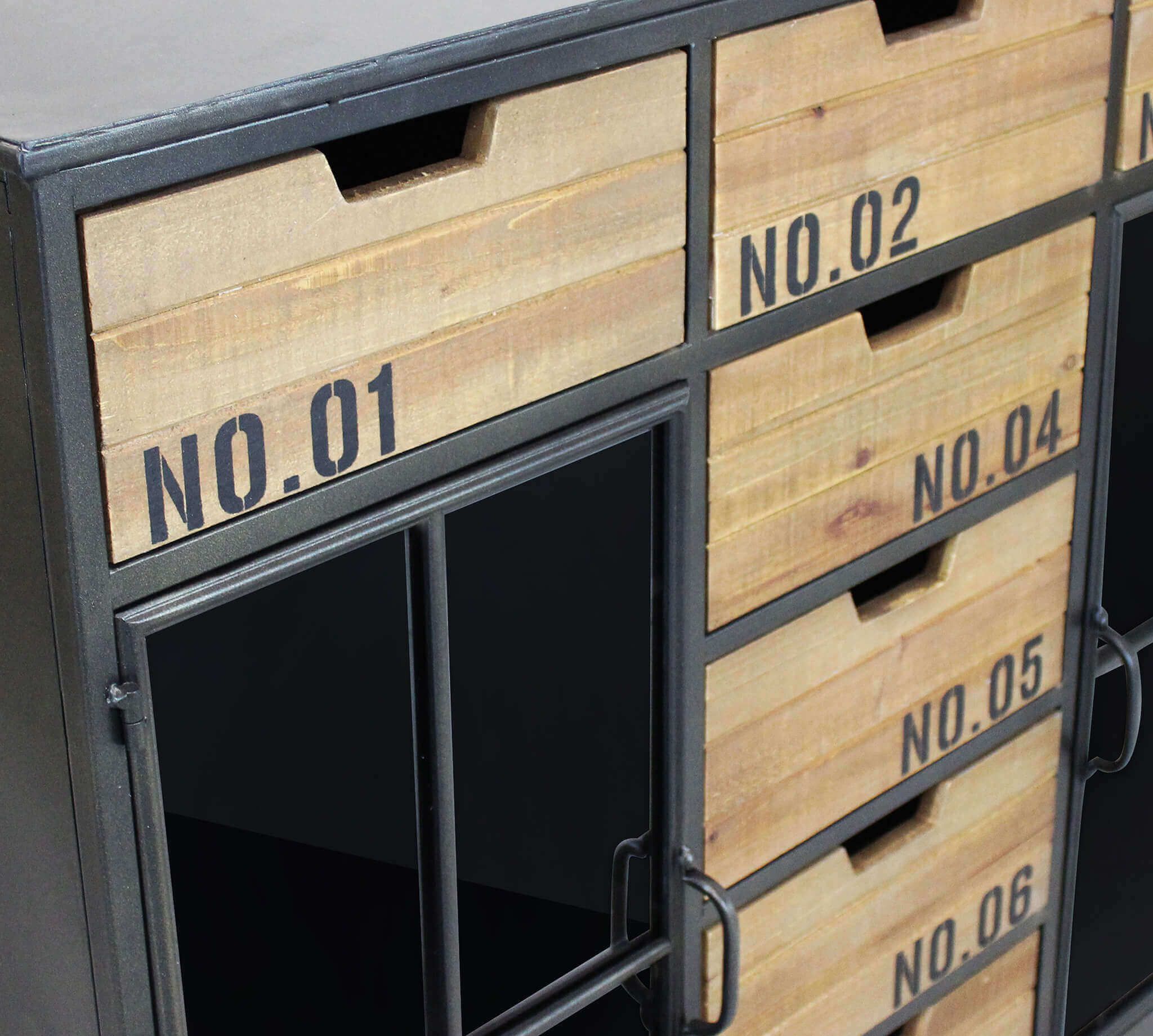 Vuoi dare una svolta industriale alla tua casa? Allora lasciati affascinare dai mobili grintosi che uniscono la forza del ferro alla sobrietà del legno. E se desideri distinguerti dalla massa, la madia DANI è la scelta perfetta per te. Con il suo connubio perfetto tra legno e acciaio, la DANI è dotata di 7 cassetti nella parte superiore e centrale, ideali per riporre i tuoi oggetti più preziosi, mentre ai lati troverai due ante con vetro per esporre le tue collezioni preferite. E la cosa migliore? Grazie alle comode rotelle, potrai spostare la madia DANI ovunque tu voglia. Prepara la tua casa per un look industriale unico e impressionante con la madia DANI e lascia tutti a bocca aperta!