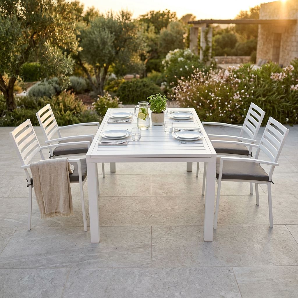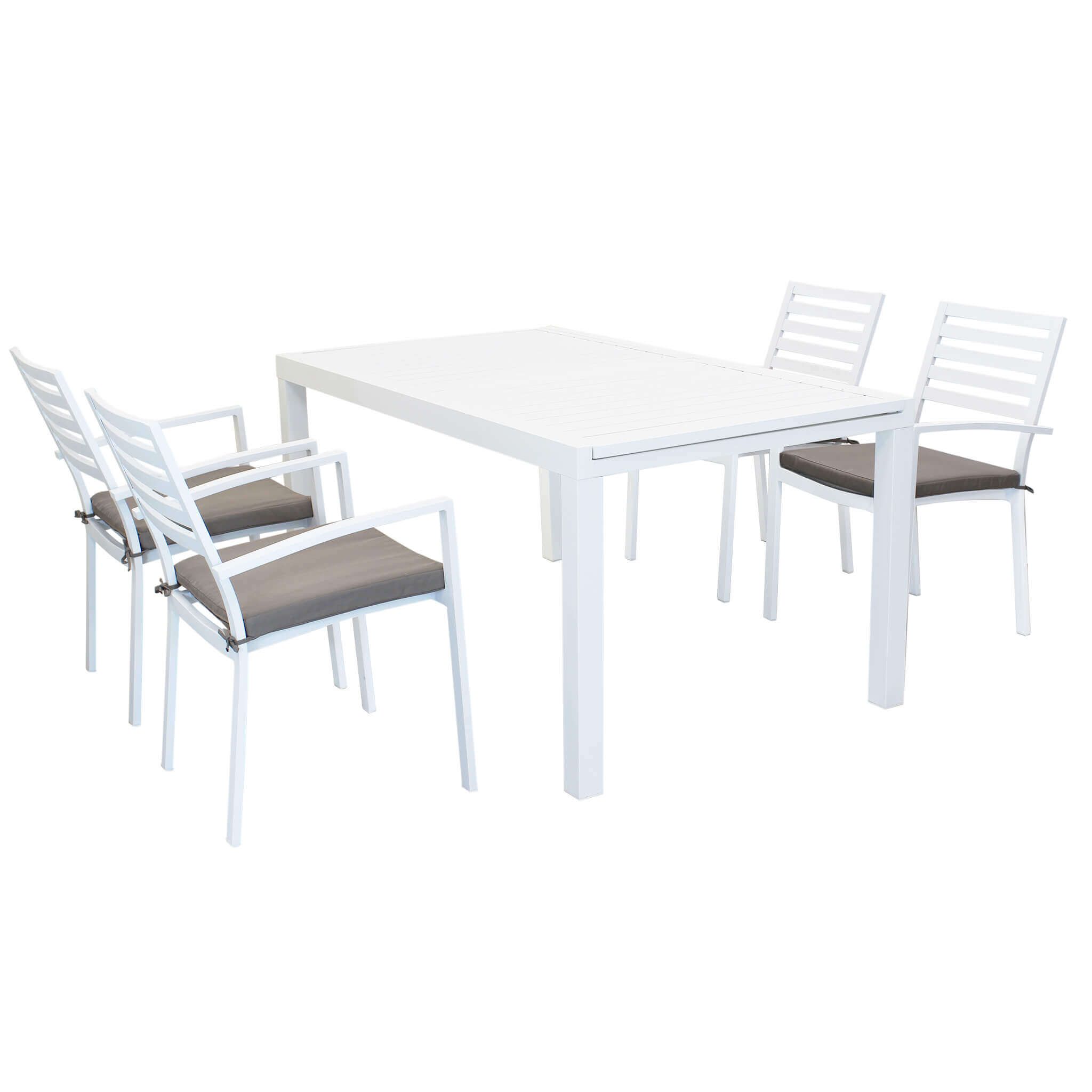 Il set DEXTER è disponibile con 4, 6, 8, 10 poltrone in colore bianco, antracite, tortora e taupe inoltre è possibile scegliere due dimensioni del tavolo, 160x90 allungabile fino a 240 cm e 200x100 allungabile fino a 300 cm