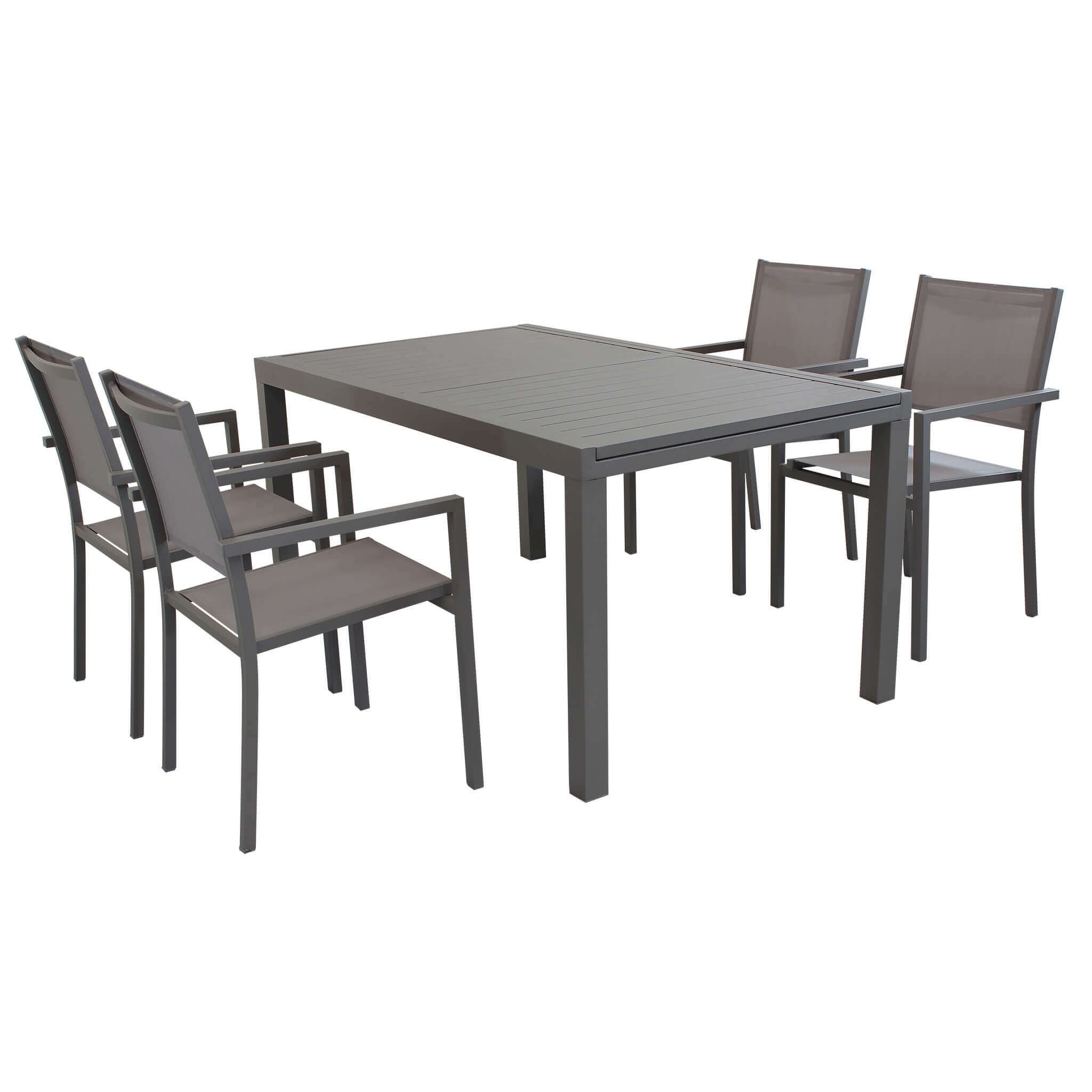 DEXTER - set tavolo in alluminio cm 160/240 x 90 x 75 h con 4 poltrone Venus