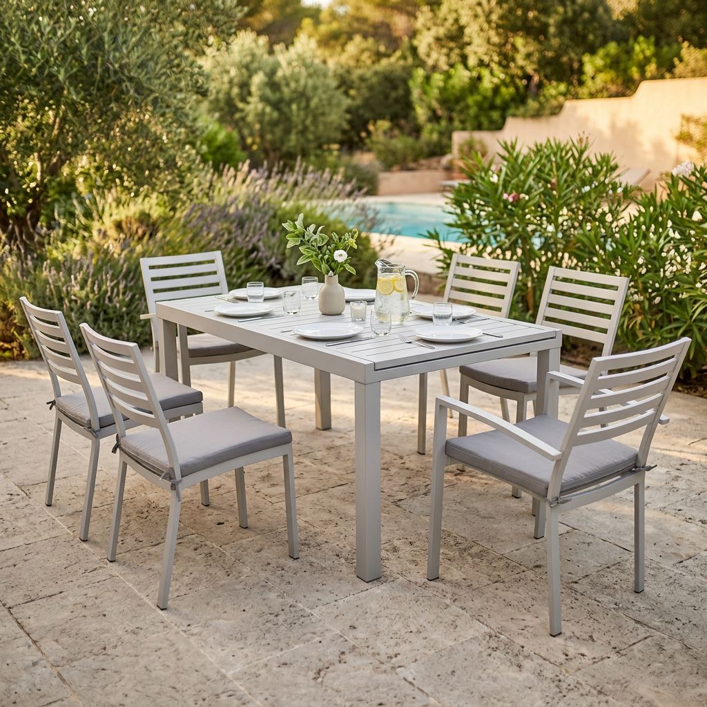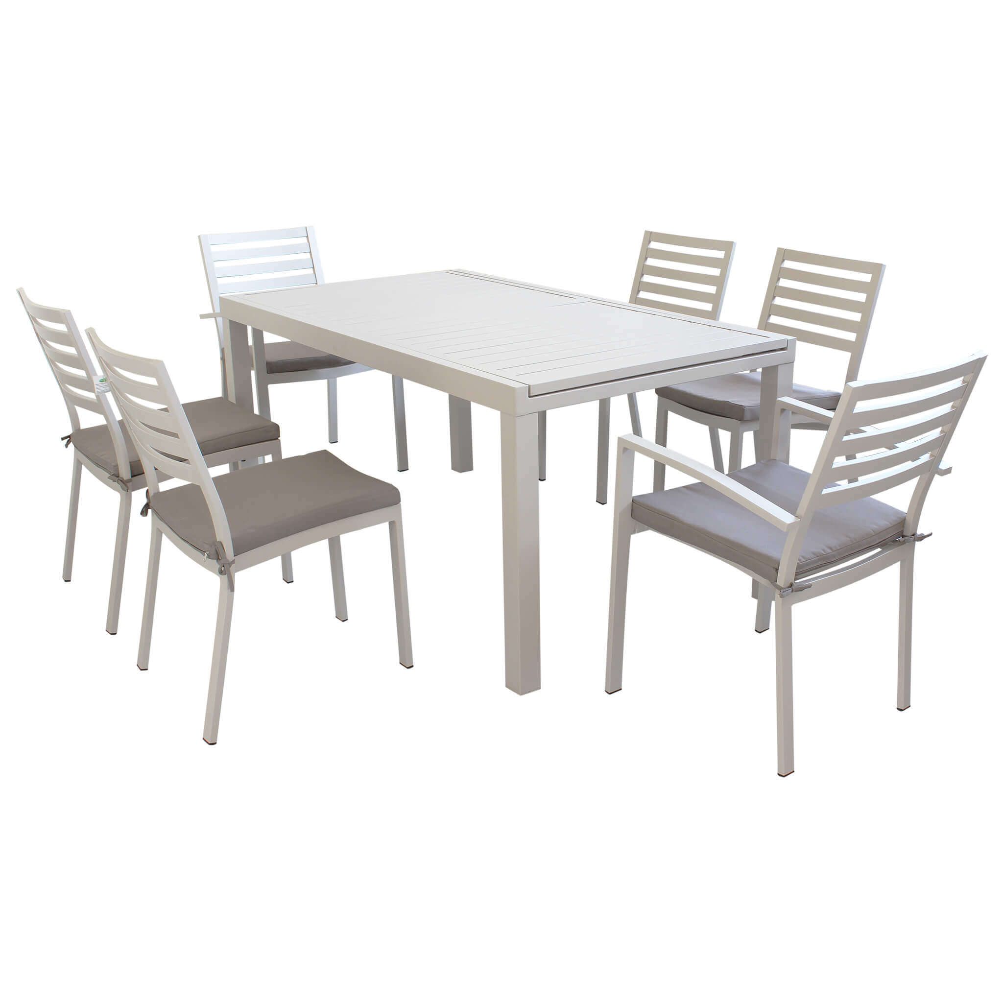 Il set DEXTER è disponibile con 4, 6, 8, 10 poltrone in colore bianco, antracite, tortora e taupe inoltre è possibile scegliere due dimensioni del tavolo, 160x90 allungabile fino a 240 cm e 200x100 allungabile fino a 300 cm