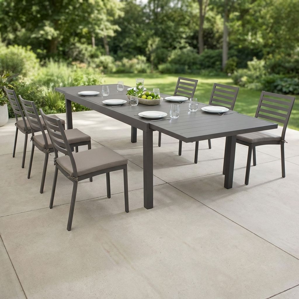 Il set DEXTER è disponibile con 4, 6, 8, 10 poltrone in colore bianco, antracite, tortora e taupe inoltre è possibile scegliere due dimensioni del tavolo, 160x90 allungabile fino a 240 cm e 200x100 allungabile fino a 300 cm