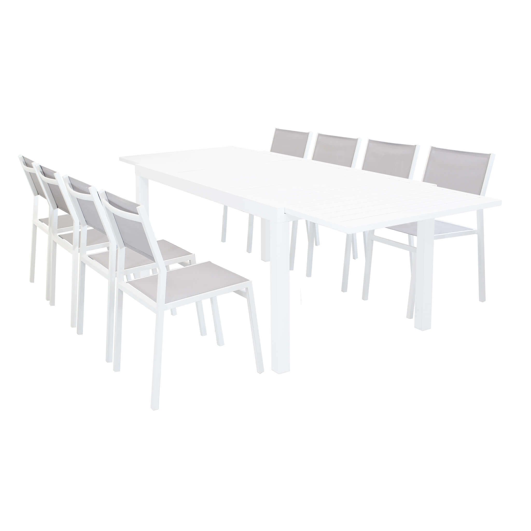 Il set DEXTER è disponibile con 4, 6, 8, 10 poltrone in colore bianco, antracite, tortora e taupe inoltre è possibile scegliere due dimensioni del tavolo, 160x90 allungabile fino a 240 cm e 200x100 allungabile fino a 300 cm