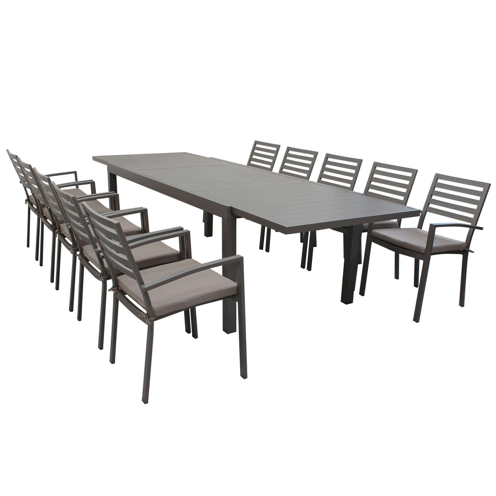 DEXTER - set tavolo in alluminio cm 200/300 x 100 x 74 h con 10 poltrone Dexter