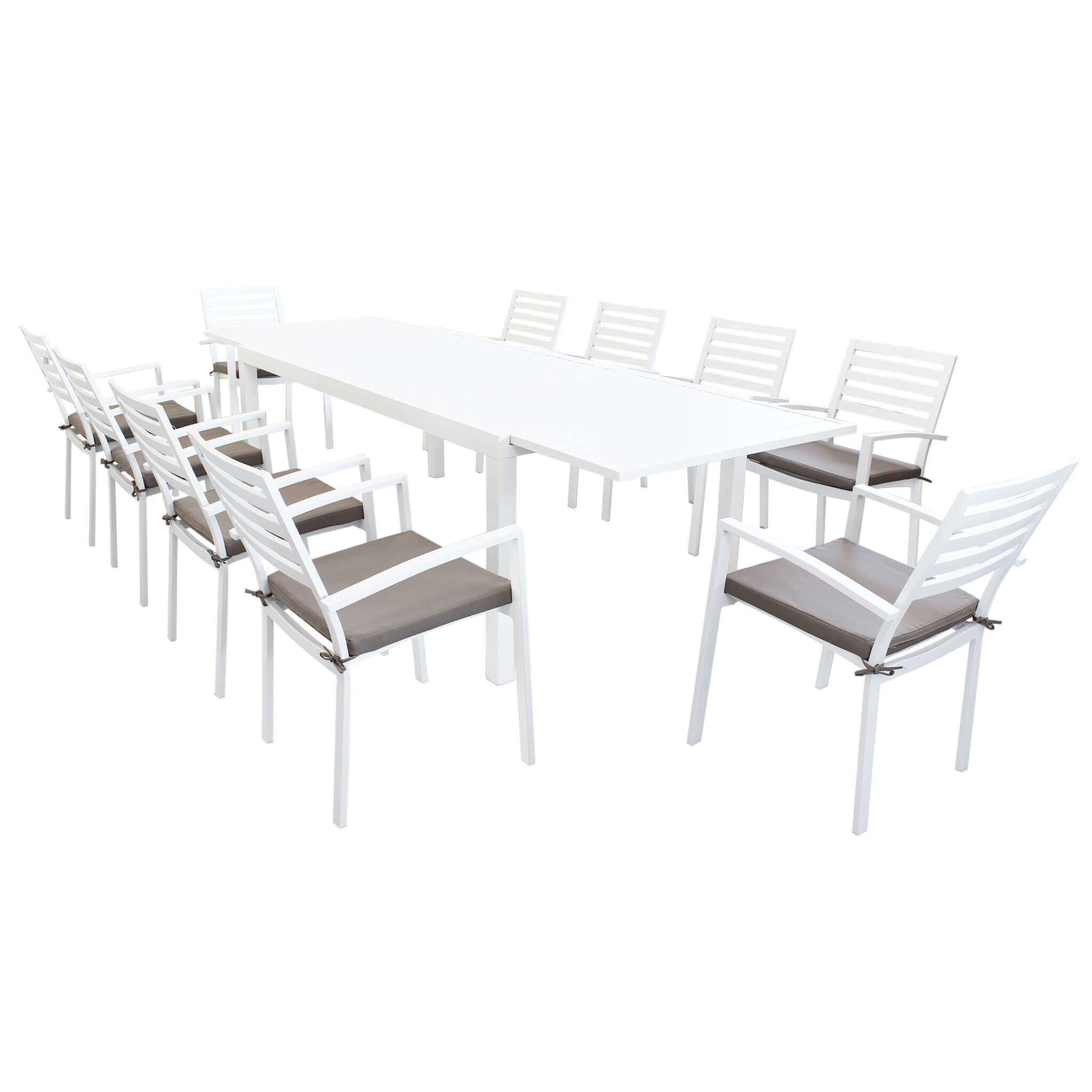 Il set DEXTER è disponibile con 4, 6, 8, 10 poltrone in colore bianco, antracite, tortora e taupe inoltre è possibile scegliere due dimensioni del tavolo, 160x90 allungabile fino a 240 cm e 200x100 allungabile fino a 300 cm