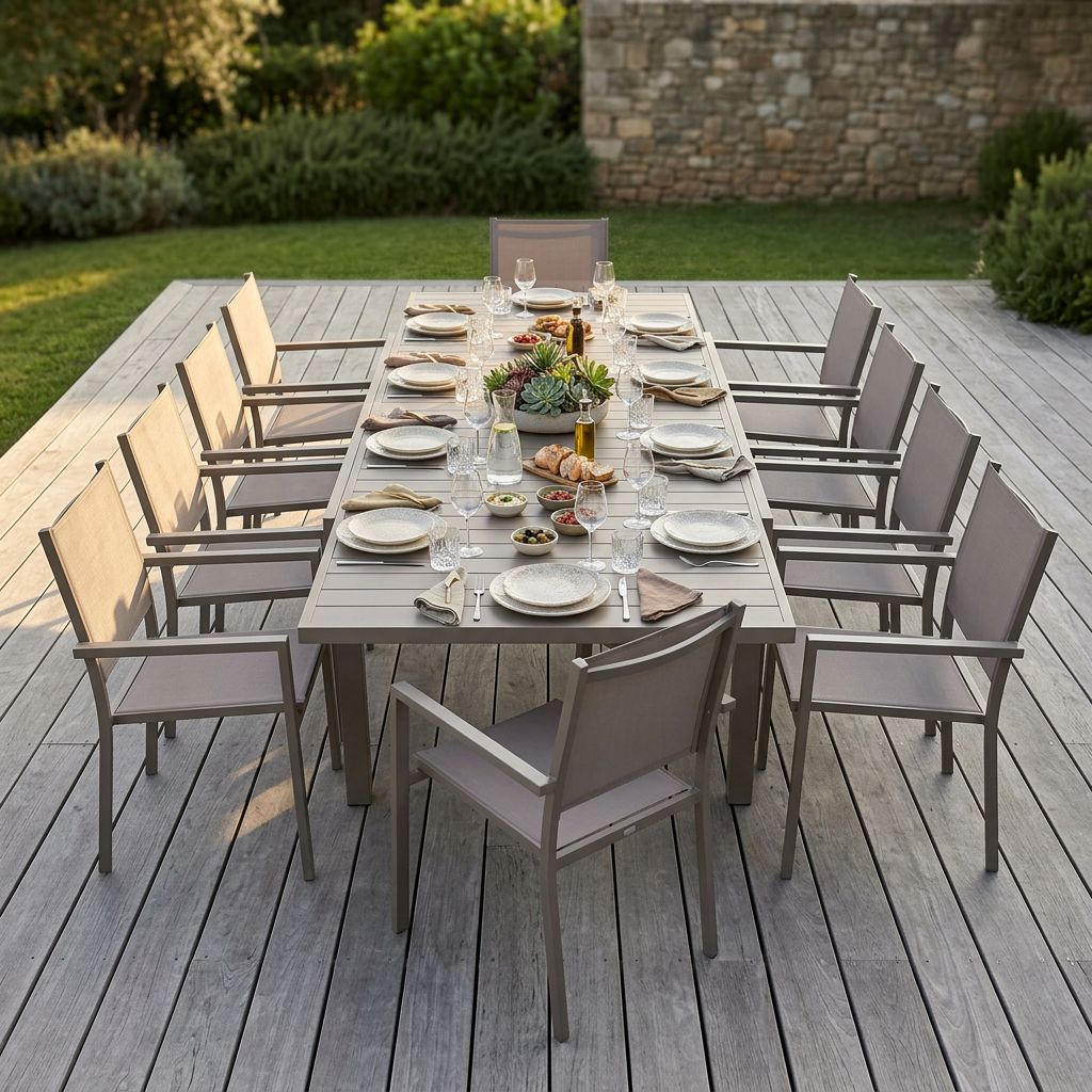 Il set DEXTER è disponibile con 4, 6, 8, 10 poltrone in colore bianco, antracite, tortora e taupe inoltre è possibile scegliere due dimensioni del tavolo, 160x90 allungabile fino a 240 cm e 200x100 allungabile fino a 300 cm