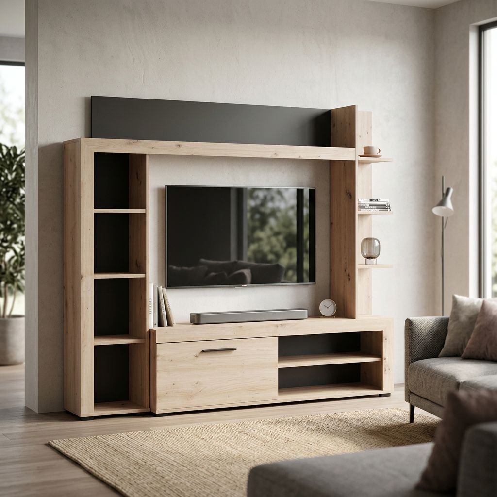 • PER SALA TV E OPEN SPACE: soluzione versatile per soggiorno, zona living o parete attrezzata moderna, perfetta per creare un angolo tv funzionale e d’impatto.