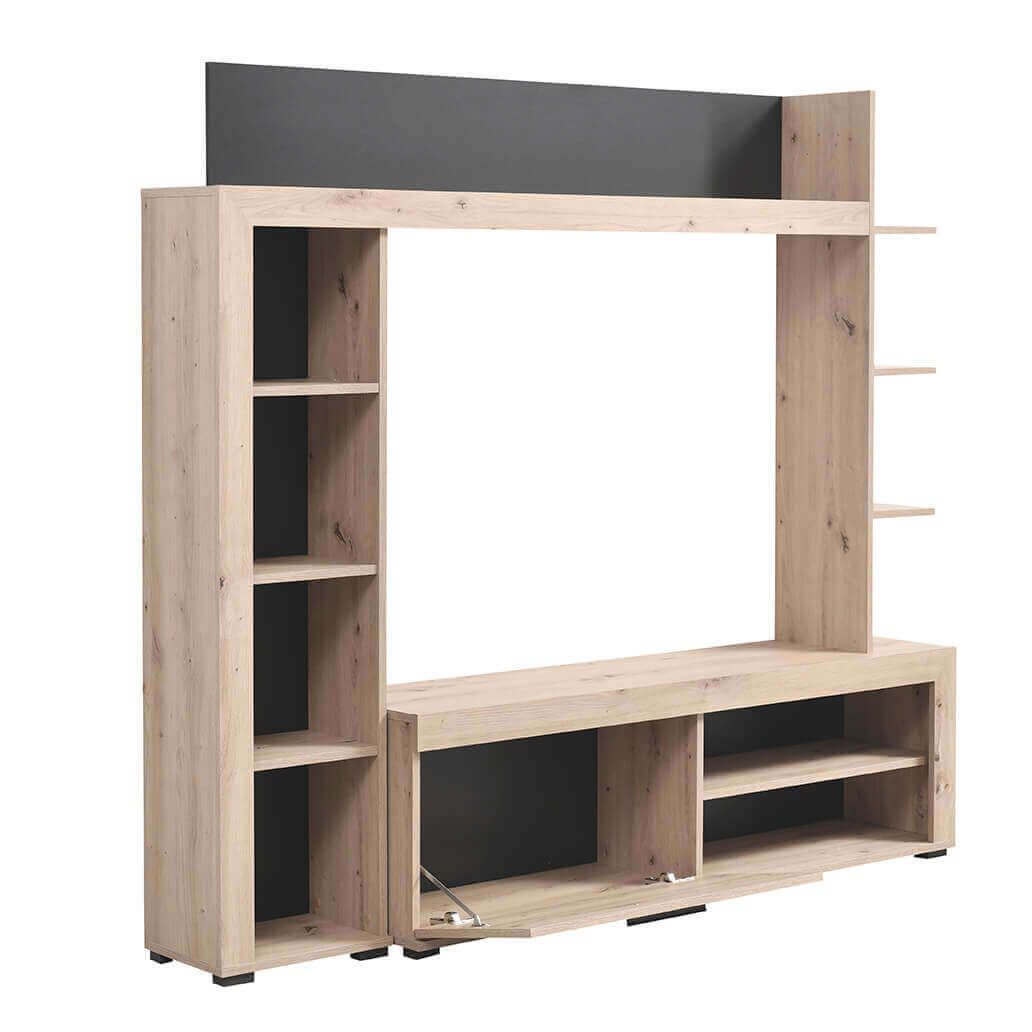 La parete attrezzata moderna DODO è disponibile in 2 colori: rovere chiaro e rovere grigio.