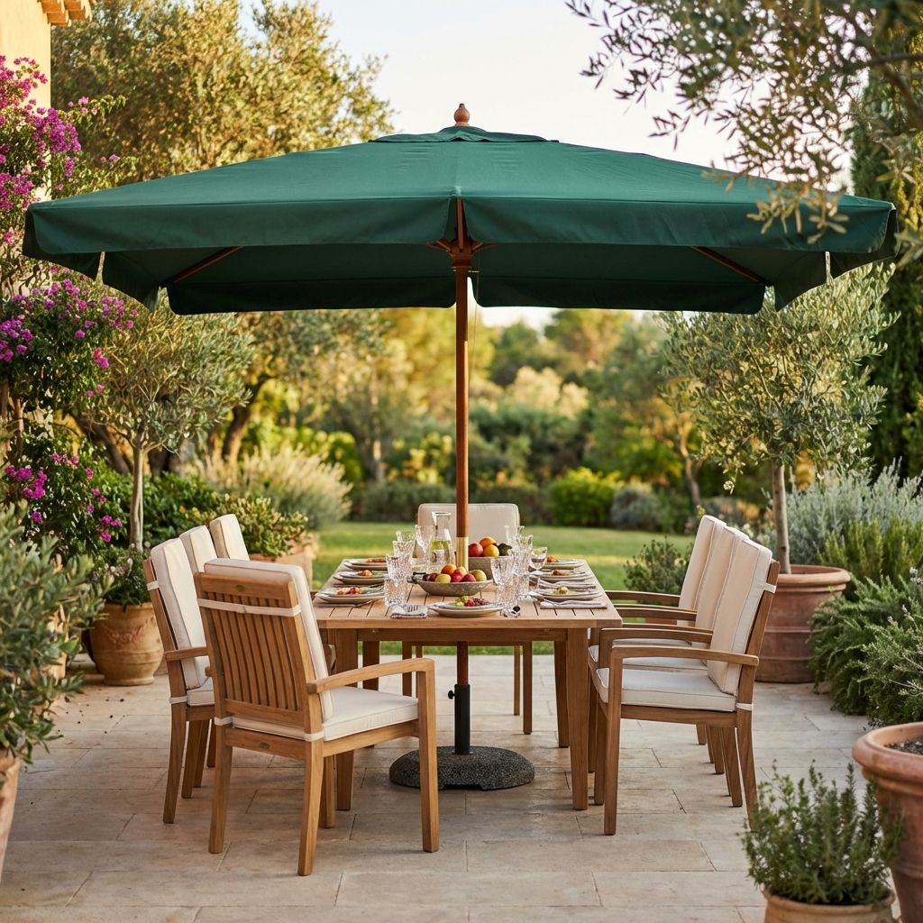 L'ombrellone DOMINUS è disponibile in colore bianco, rosso, ecrù o verde, lo puoi acquistare in dimensione 3x2 m, 2x2 m e anche rotondo con un diamentro di 3mtest a