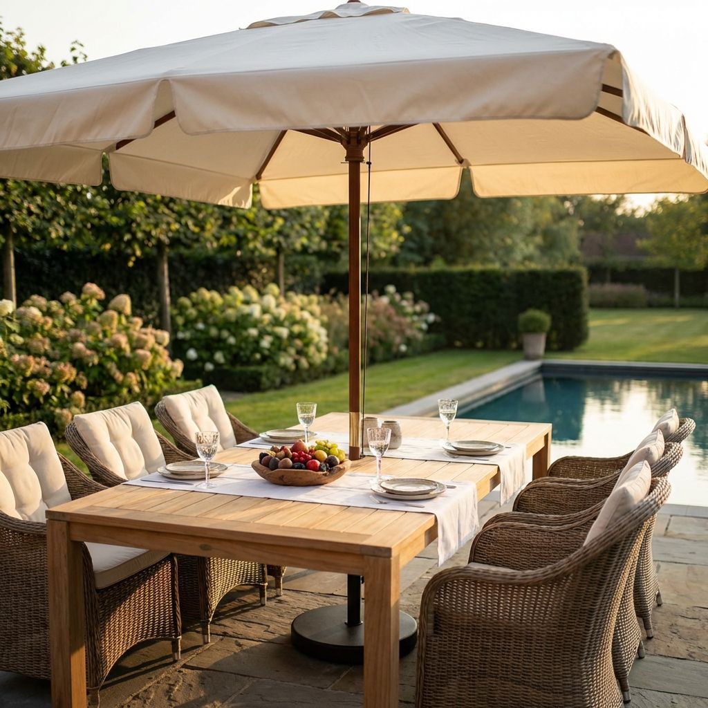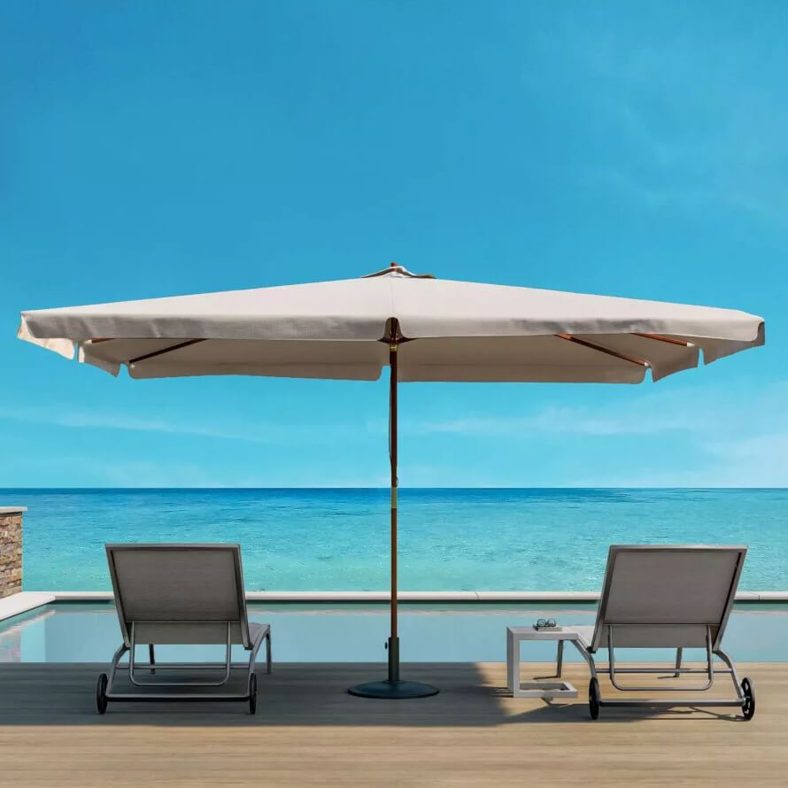 L'ombrellone DOMINUS è disponibile in colore bianco, rosso, ecrù o verde, lo puoi acquistare in dimensione 3x2 m, 2x2 m e anche rotondo con un diamentro di 3m