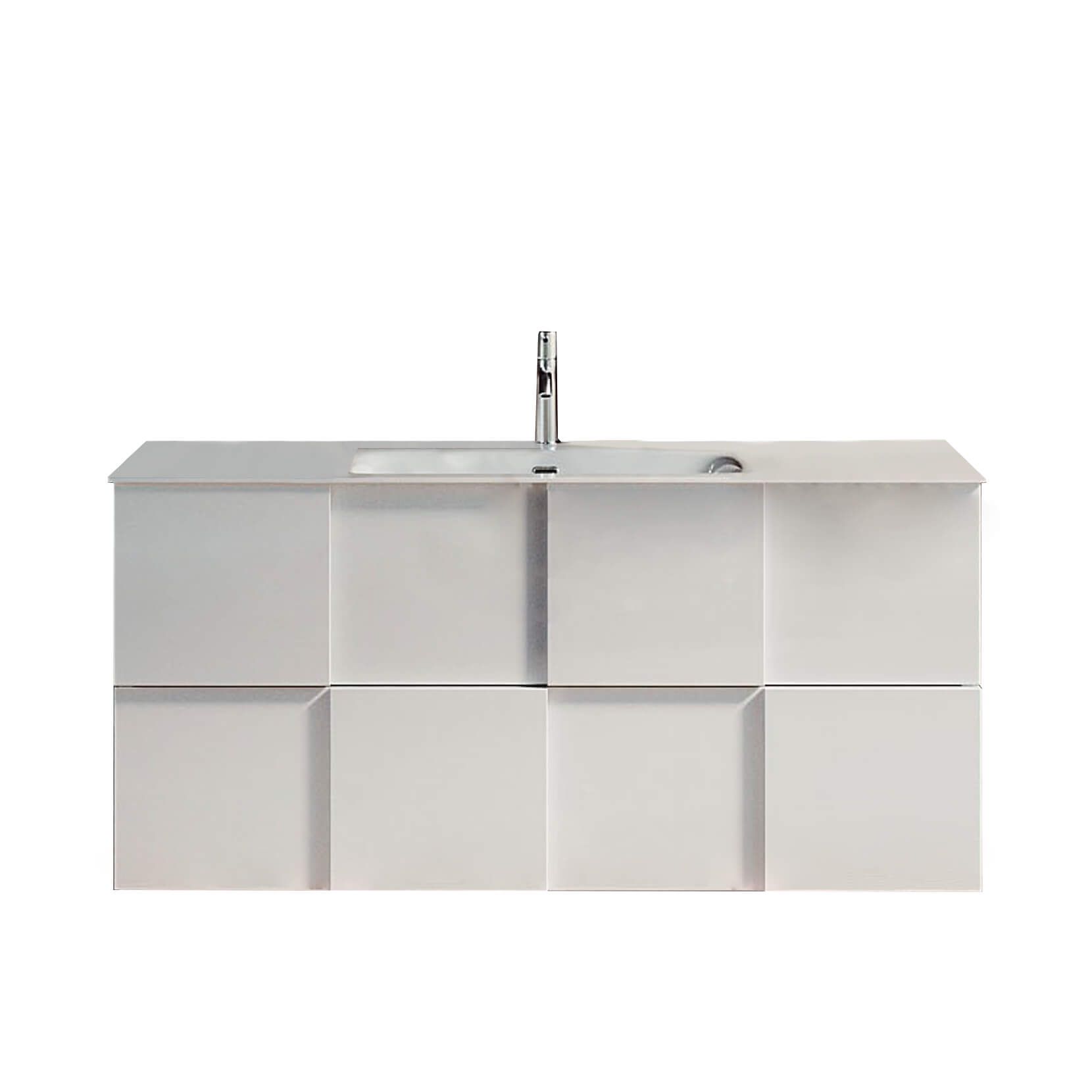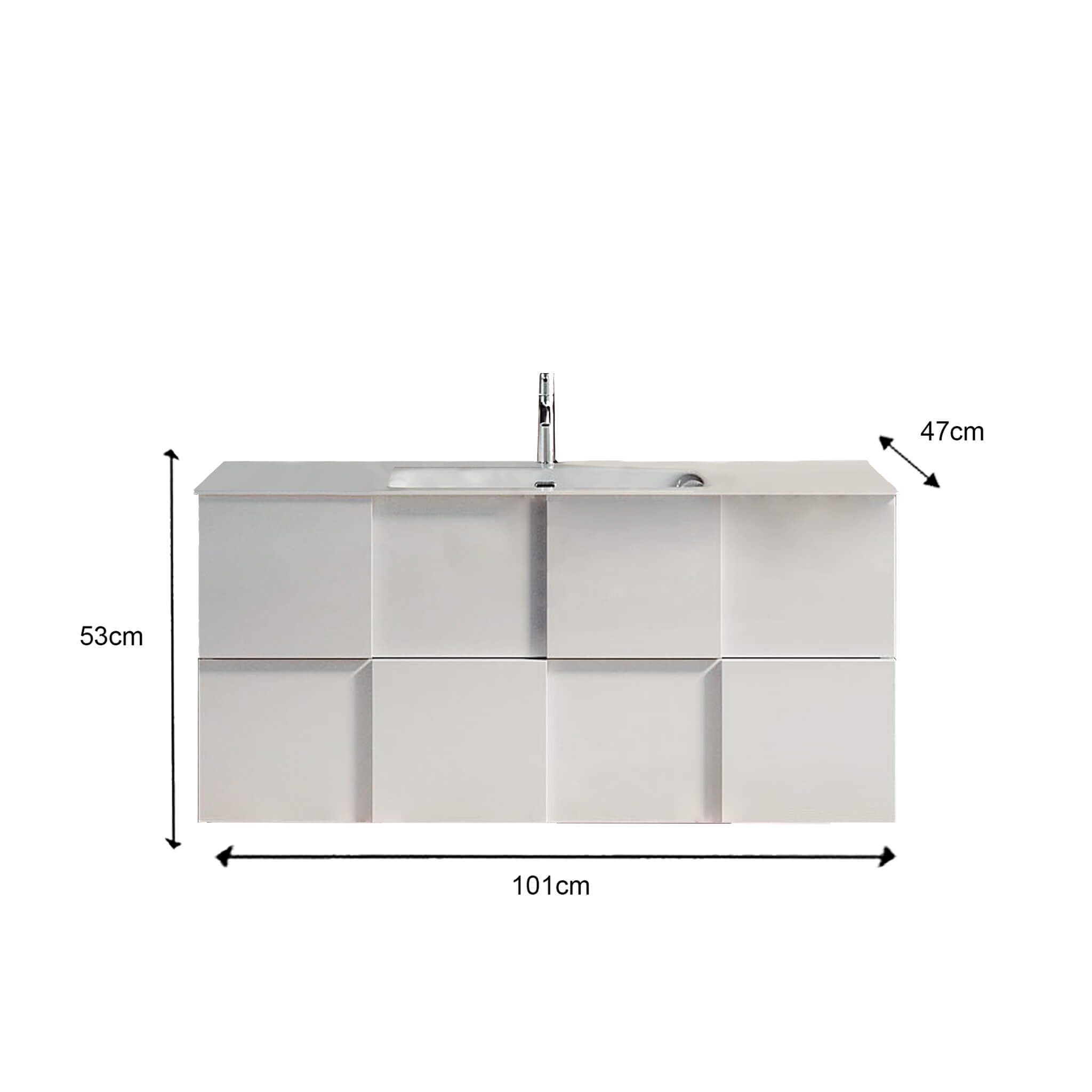 Il mobile lavabo sospeso "DOMO" incarna un design moderno e minimalista per il bagno, con una finitura bianca e senza maniglie, ottimizzando lo spazio e promuovendo un ambiente ordinato e arioso. Il lavabo integrato completa il look sofisticato e funzionale, ideale per qualsiasi bagno contemporaneo.