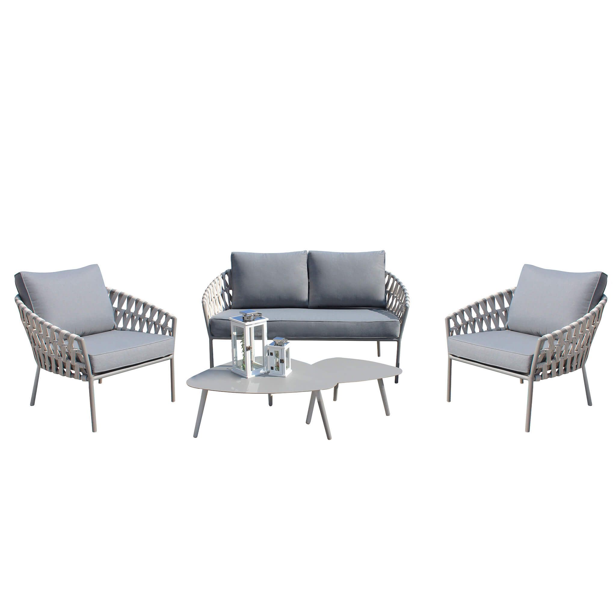 Se cerchi un salotto da giardino dal design contemporaneo, DORCAS sarà perfetto. Questo salotto e caratterizzato dall’intreccio a mano di corde termoplastiche in fibra acrilica di Teflon, resistenti all’acqua e di facile pulizia. Composto da due tavolini, due comode poltrone e un divano, il salotto da giardino DORCAS vi conquisterà con il suo design moderno. Il materiale presenta un appeal morbido e raffinato simile ad intrecci tessili. La struttura interna di tutti i componenti del salotto da giardino è in alluminio, attorno è intrecciata una corda piatta molto resistente. Si caratterizza per la sua resistenza ai raggi UV e per la velocità di asciugatura. I colori delle finiture sono il bianco avorio melange e un grigio con filamenti di color sabbia. Pensare un arredamento da giardino che sia resistente nella qualità e piacevole dal punto di vista estetico è una fase delicata nell'allestimento del proprio spazio all'aperto. Per questo motivo, per rispondere al meglio alle esigenze di stile e funzionalità, le recenti tendenze si orientano verso il rattan, ideale per un'area relax esterna ma riparata, e la fibra sintetica, altrettanto gradevole ma progettata per essere esposta agli agenti esterni.