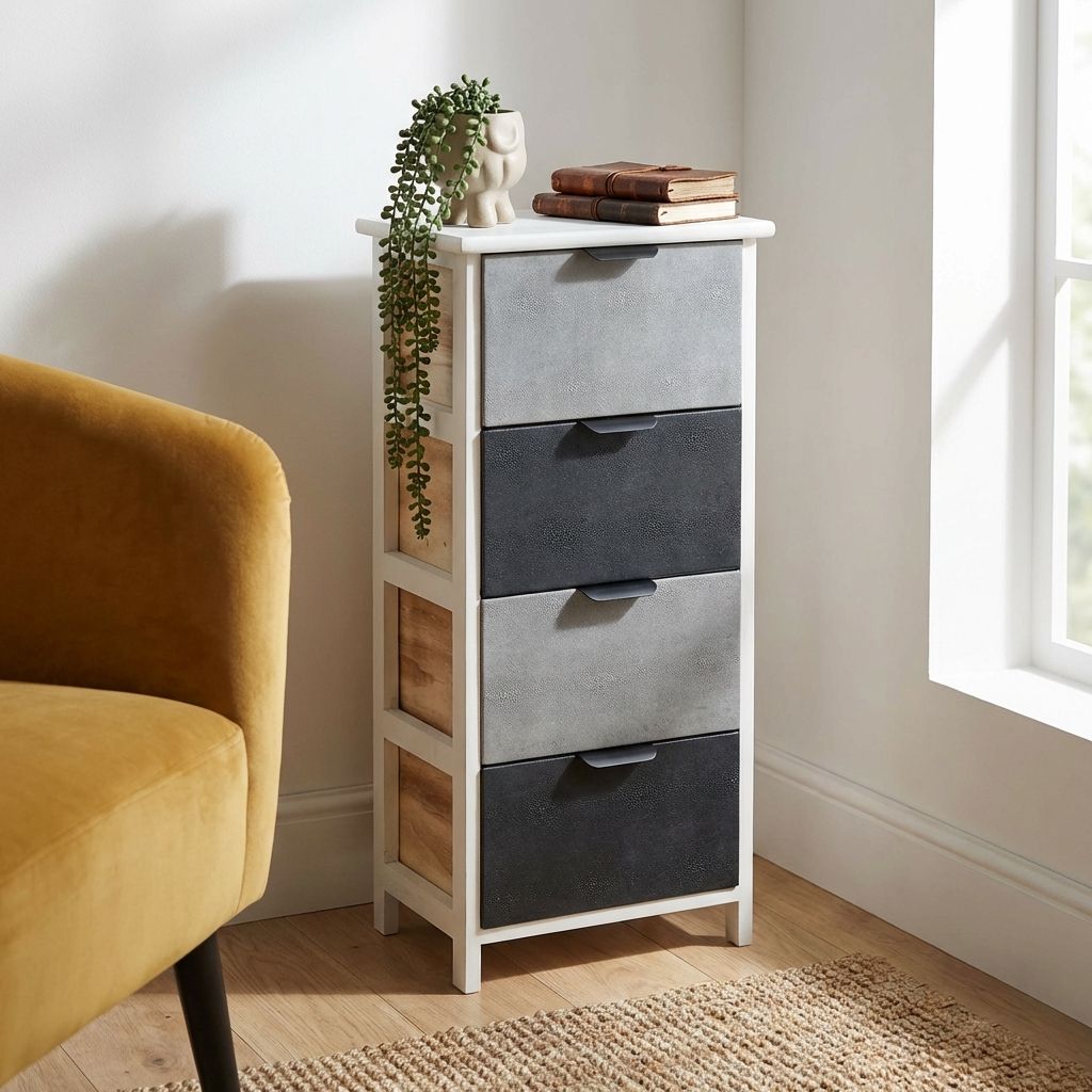 Questo mobiletto in legno con 4 cassetti con un design sofisticato e versatile, offre ampio spazio contenitivo con un tocco di stile. Robusto, raffinato e funzionale, è la soluzione ideale per chi desidera un ambiente più organizzato e armonioso.
