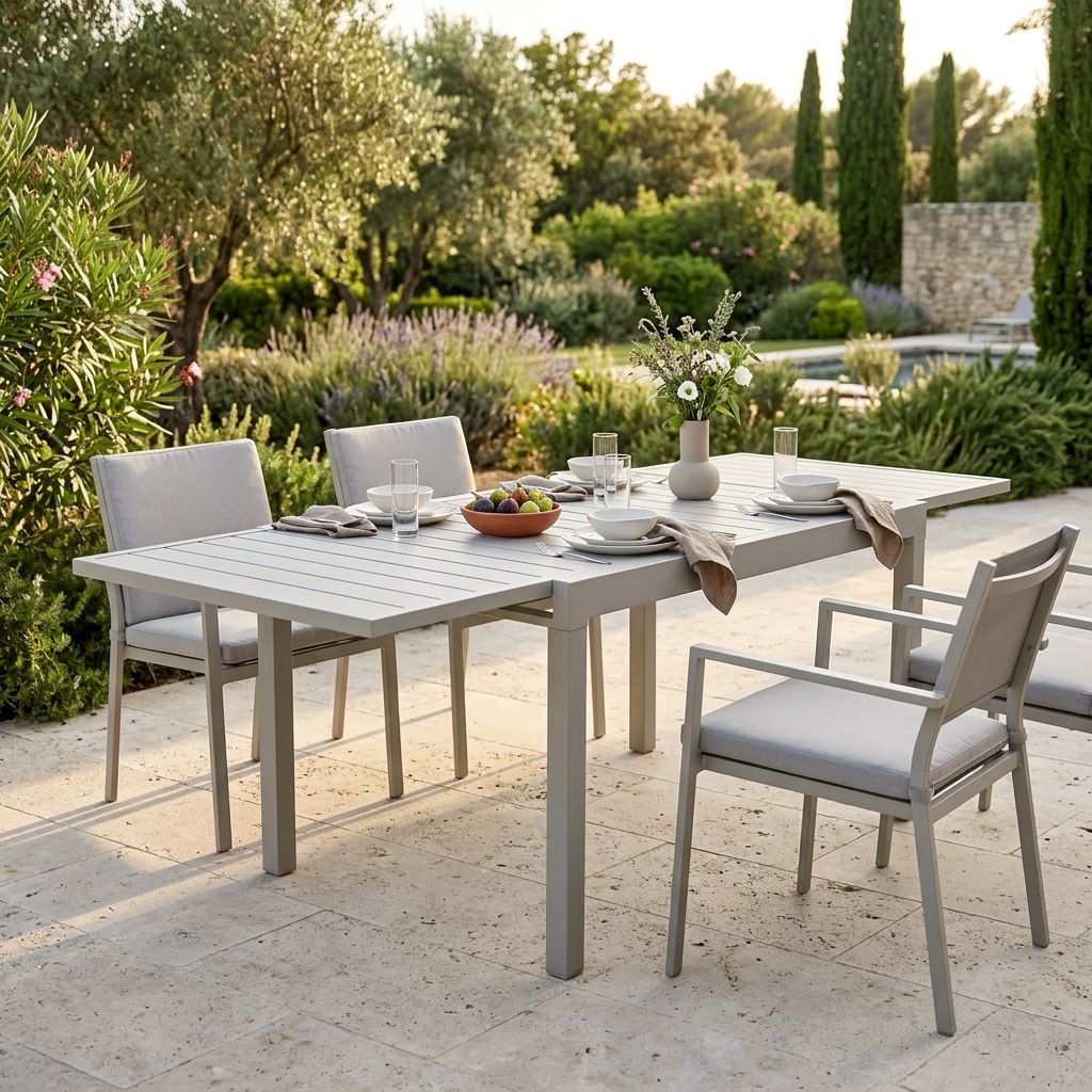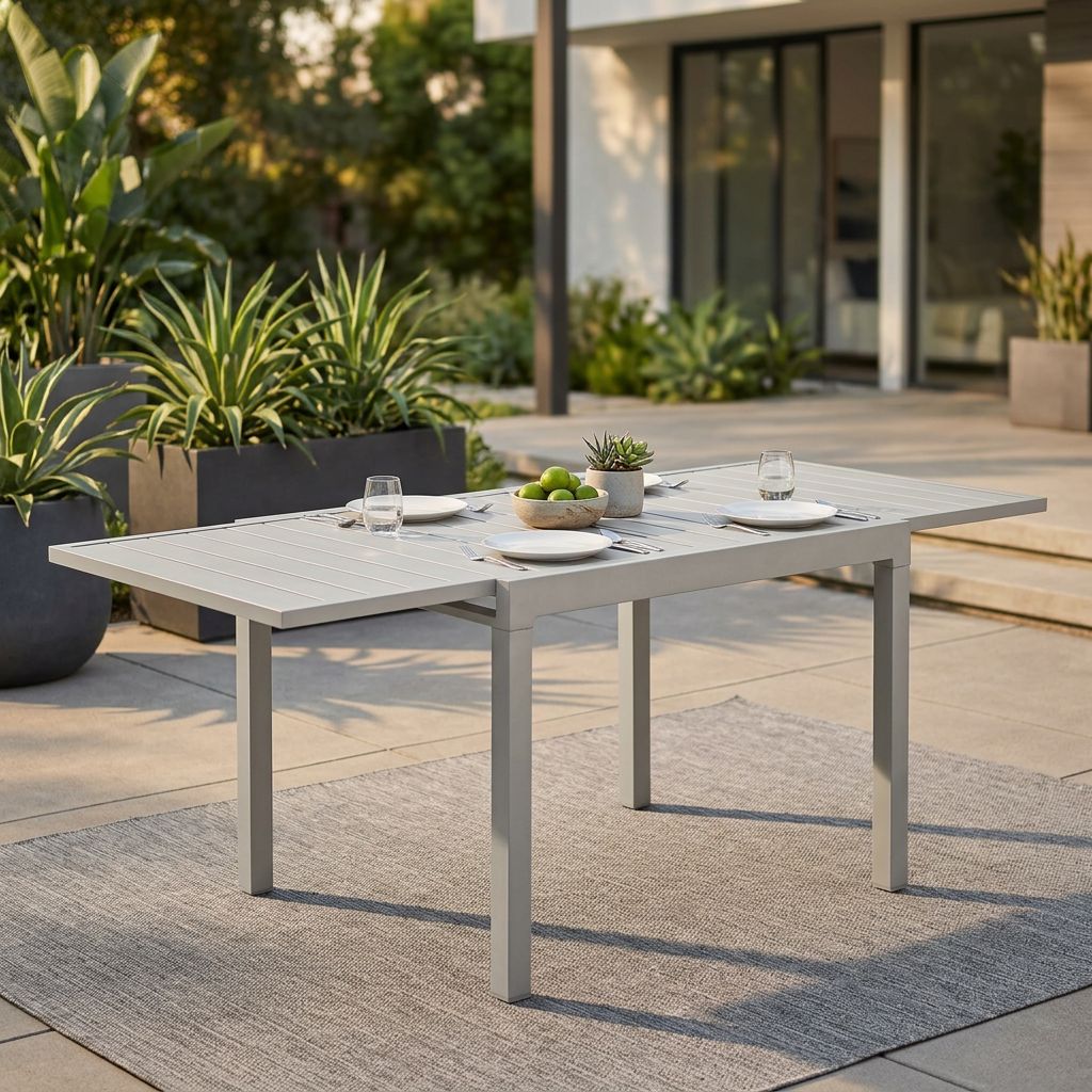 Questo tavolo allungabile in alluminio offre un design moderno e minimalista, abbinato a una struttura resistente e leggera. Il pratico meccanismo scorrevole permette di ospitare più persone, garantendo versatilità e comfort. Disponibile in bianco, antracite, taupe e tortora, si adatta facilmente a qualsiasi ambiente esterno