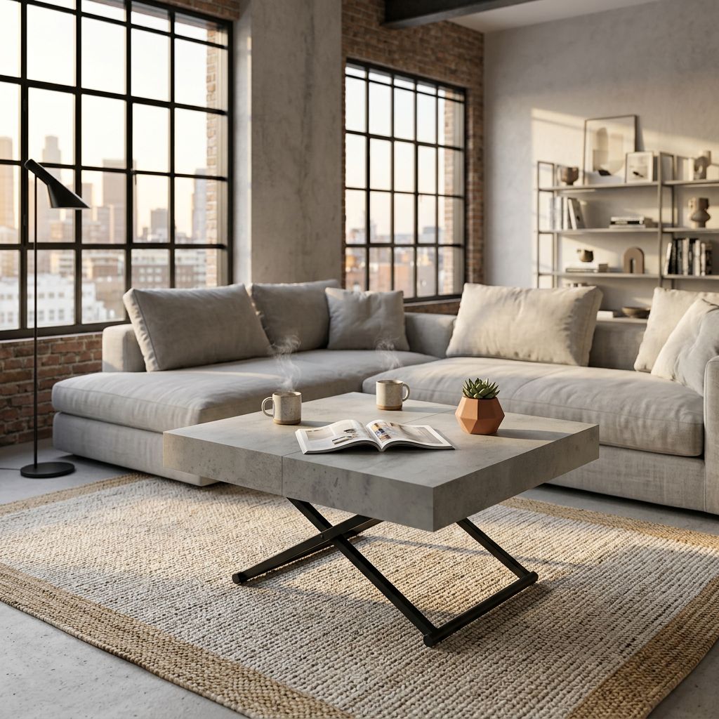 Il tavolino salvaspazio EUTE è disponibile in 2 colori: effetto cemento e antracite.