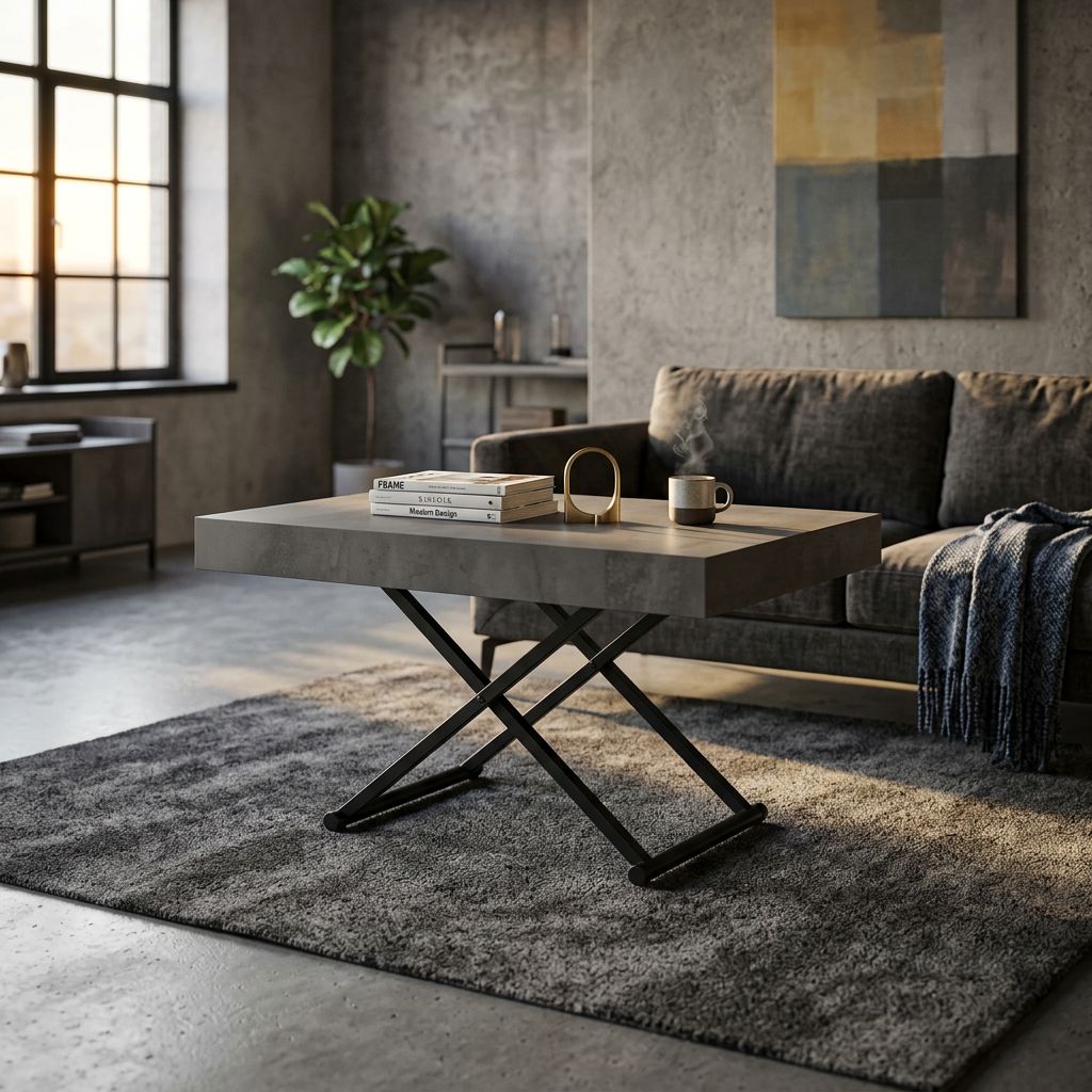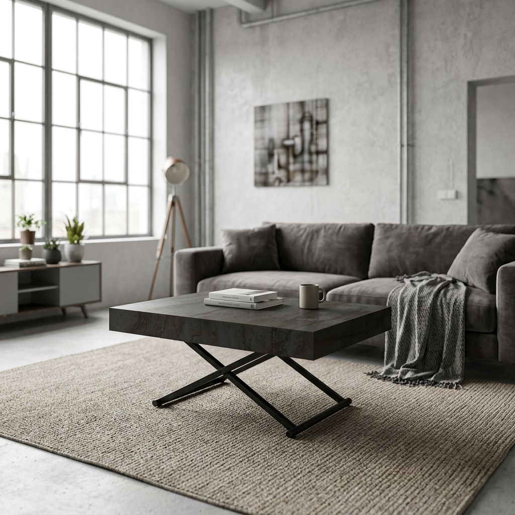 Il tavolino salvaspazio EUTE è disponibile in 2 colori: effetto cemento e antracite.