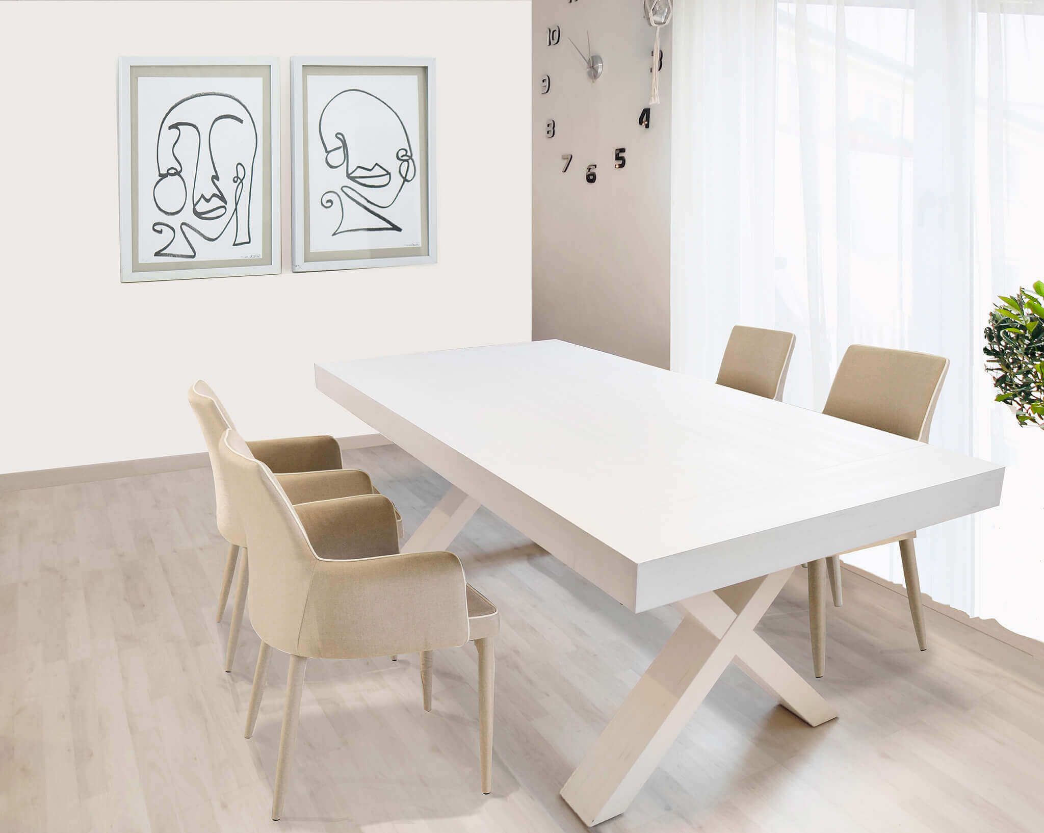 Il tavolo Fabian è la perfetta combinazione di alta qualità e stile moderno. Realizzato in rovere bianco nobilitato con un effetto consumato, sarà il protagonista della tua sala da pranzo e cucina. Non solo lascerà i tuoi ospiti a bocca aperta, ma sarà anche perfetto per ambienti come uno studio o un ufficio. Con il suo design allungabile, Fabian si adatta a qualsiasi spazio. Non puoi fare a meno di avere questo tavolo unico nella tua casa!
