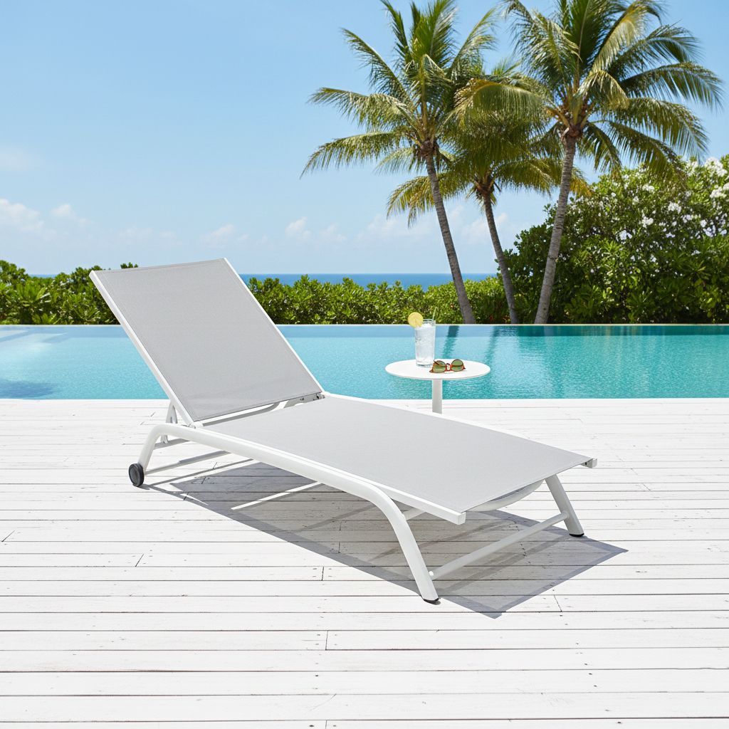 Lettino prendisole con struttura in alluminio verniciato e textilene, dotato di ruote posteriori e schienale regolabile. Impilabile, resistente e leggero, combina comfort e praticità per un relax elegante all’aperto. Perfetto per giardino, piscina o terrazzo. Disponibile in bianco, antracite, taupe e tortora.