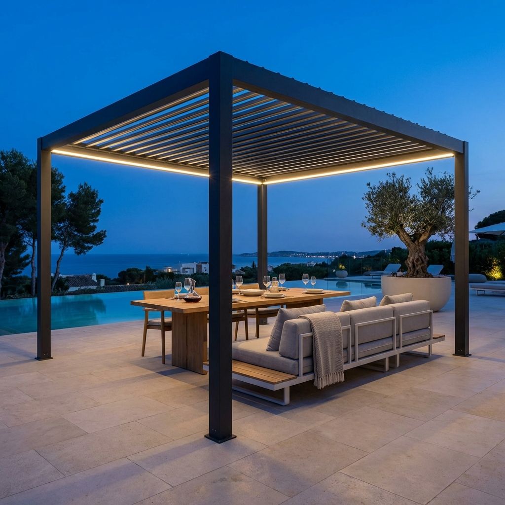 La pergola bioclimatica FIREBOLT, disponibile nelle dimensioni 3x4 e 4x4 e nei colori bianco o antracite, eleva l'innovazione e il comfort esterno grazie alla sua funzionalità motorizzata, illuminazione a LED integrata e robusta struttura in alluminio. Questa pergola unisce tecnologia avanzata e design sofisticato, offrendo un'esperienza all'aperto eccezionalmente superiore.