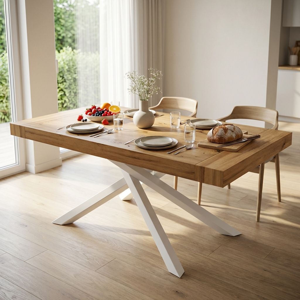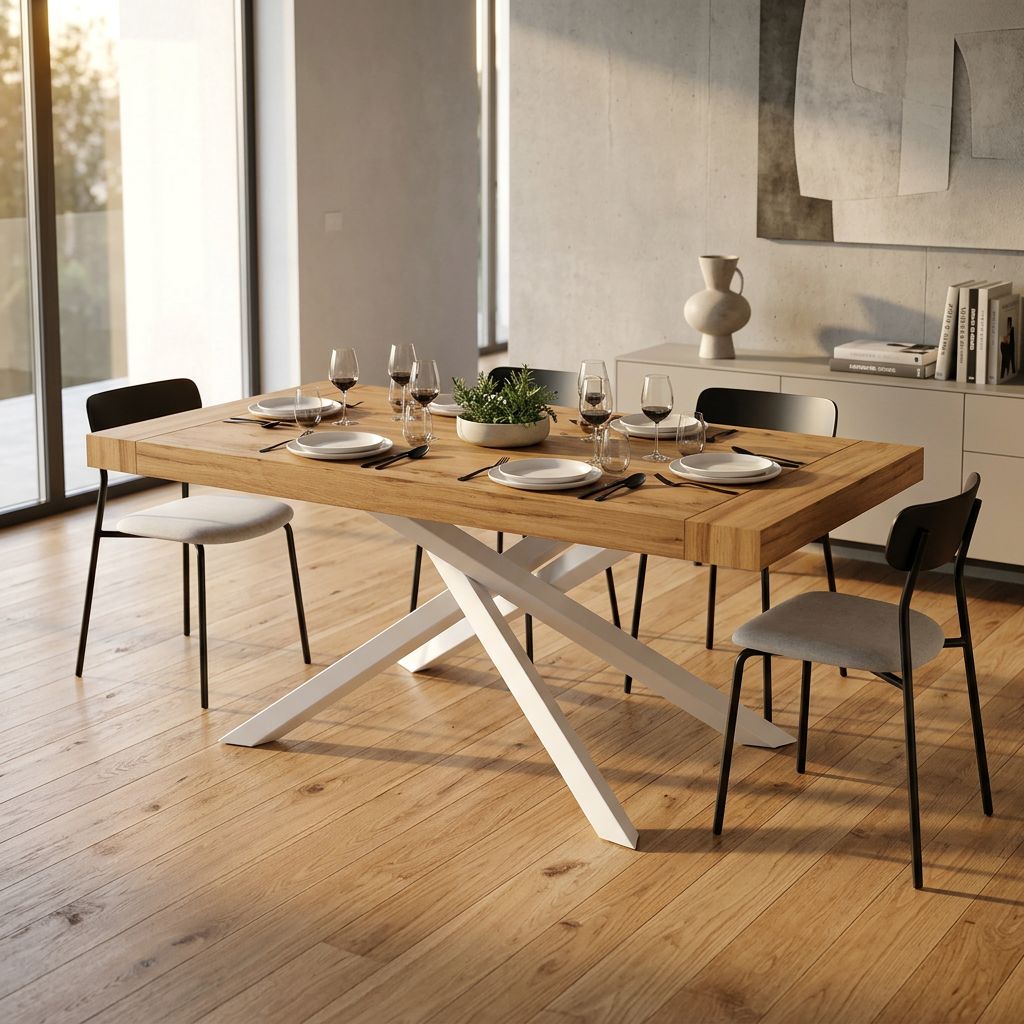 FLORA tavolo in legno e acciaio è disponibile in colore Bianco e Marrone con diemensioni di 180 e 160 cm