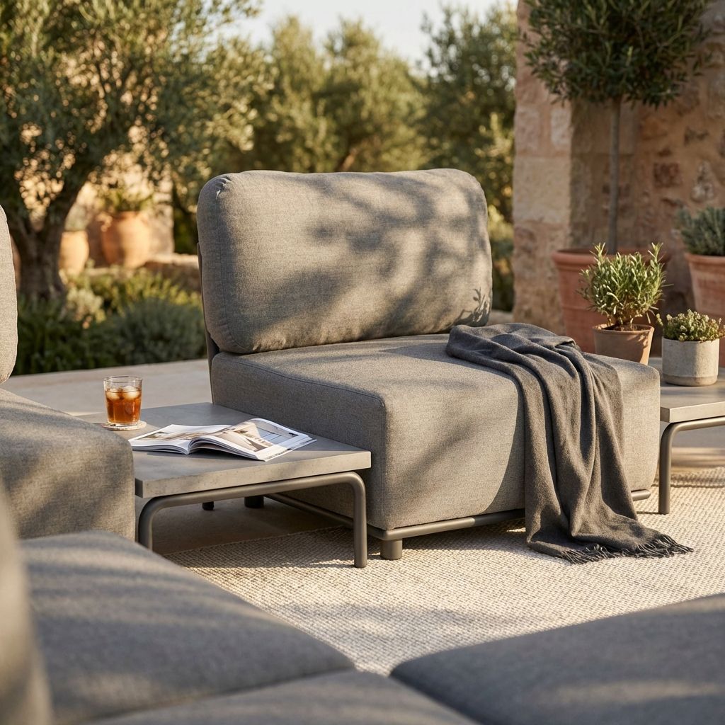 Hai bisogno di un salotto per il tuo giardino, ma non sai da dove cominciare? Non preoccuparti, siamo qui per aiutarti! Il nostro nuovo salotto modulare FLORES è la soluzione perfetta per personalizzare e adattare il tuo spazio, puoi aggiungere moduli nel tempo secondo i tuoi gusti e le tue esigenze.Il salotto da giardino è realizzato in alluminio, un materiale estremamente resistente e ideale per l'uso esterno grazie alle sue proprietà antiossidanti. La struttura è avvolta da una corda larga in textilene imbottita, che oltre ad essere elegante è perfetta per il giardino. E se dovesse bagnarsi, si asciugherebbe rapidamente.