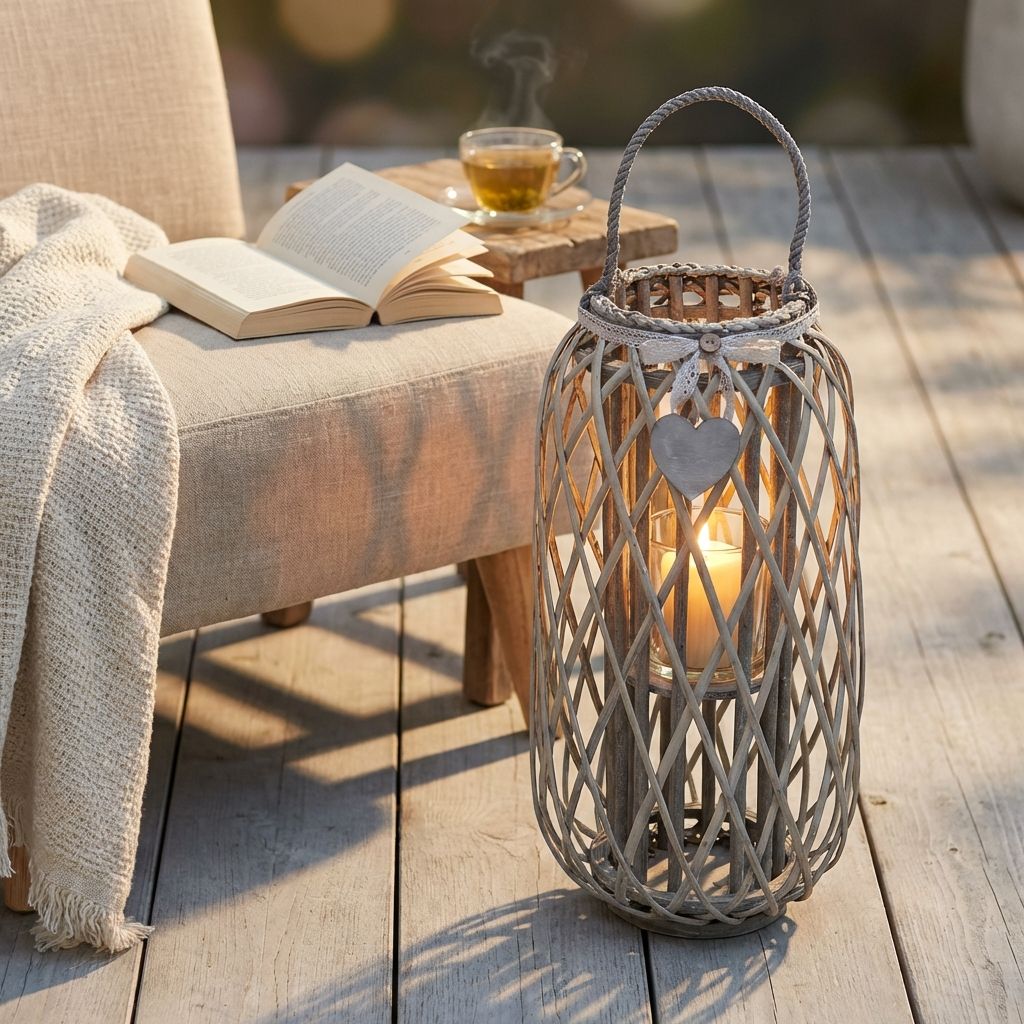 Questa elegante lanterna in vimini GENEVIEVE potrà abbellire armonizzando il tuo ambiente e la tua casa grazie alla sua luce piacevole. All'interno della lanterna c'è un inserto in vetro rimovibile per posizionare la candela e questo creerà un'atmosfera accogliente, il corpo di vimini grigio offre un magico gioco di luci. Questa lanterna potrà anche essere utile per decorare l'area esterna coperta della tua casa, nelle calde giornate primaverili o estive, puoi goderti il tuo giardino avvolto da una bella luce soffusa. Le serate a casa non potranno essere più belle!