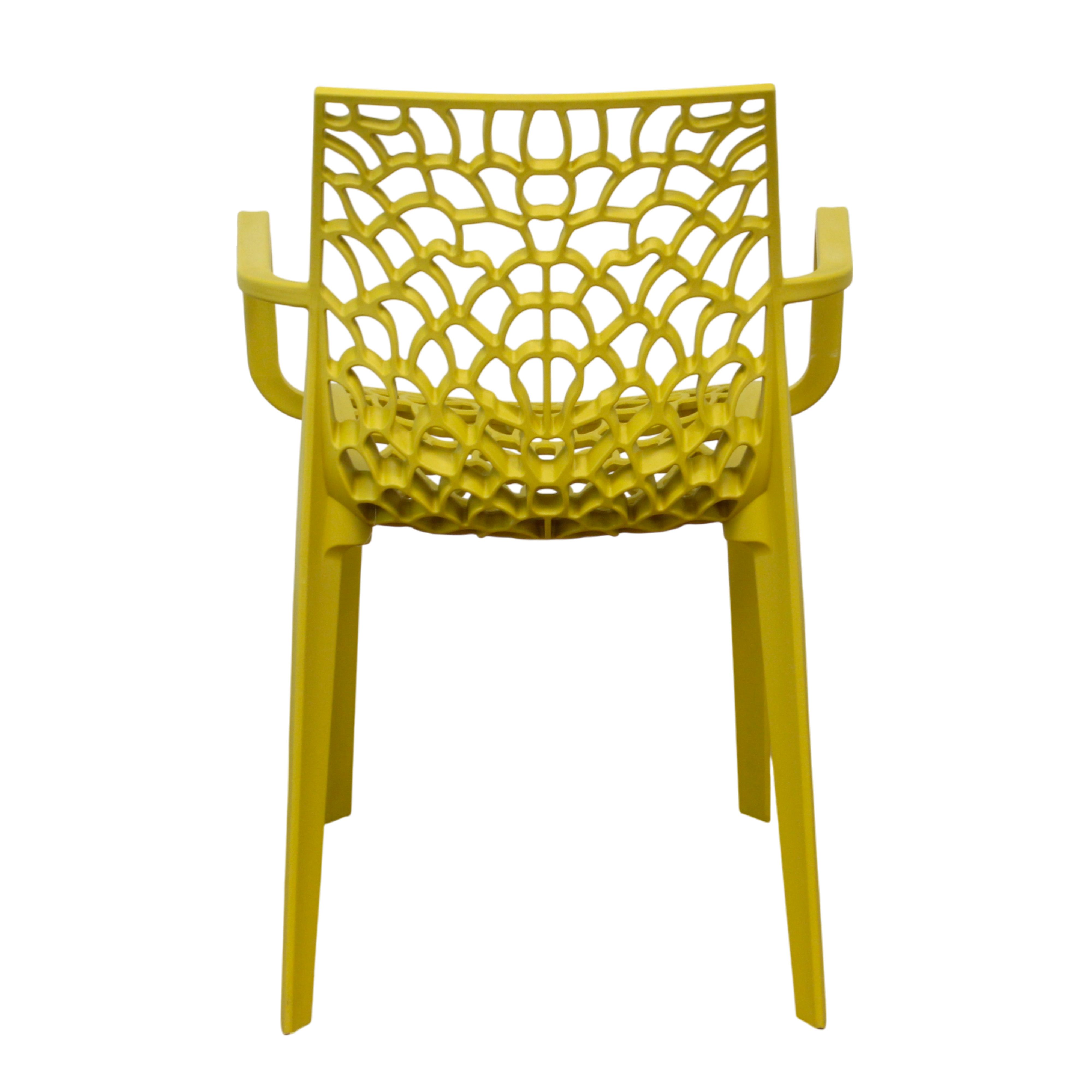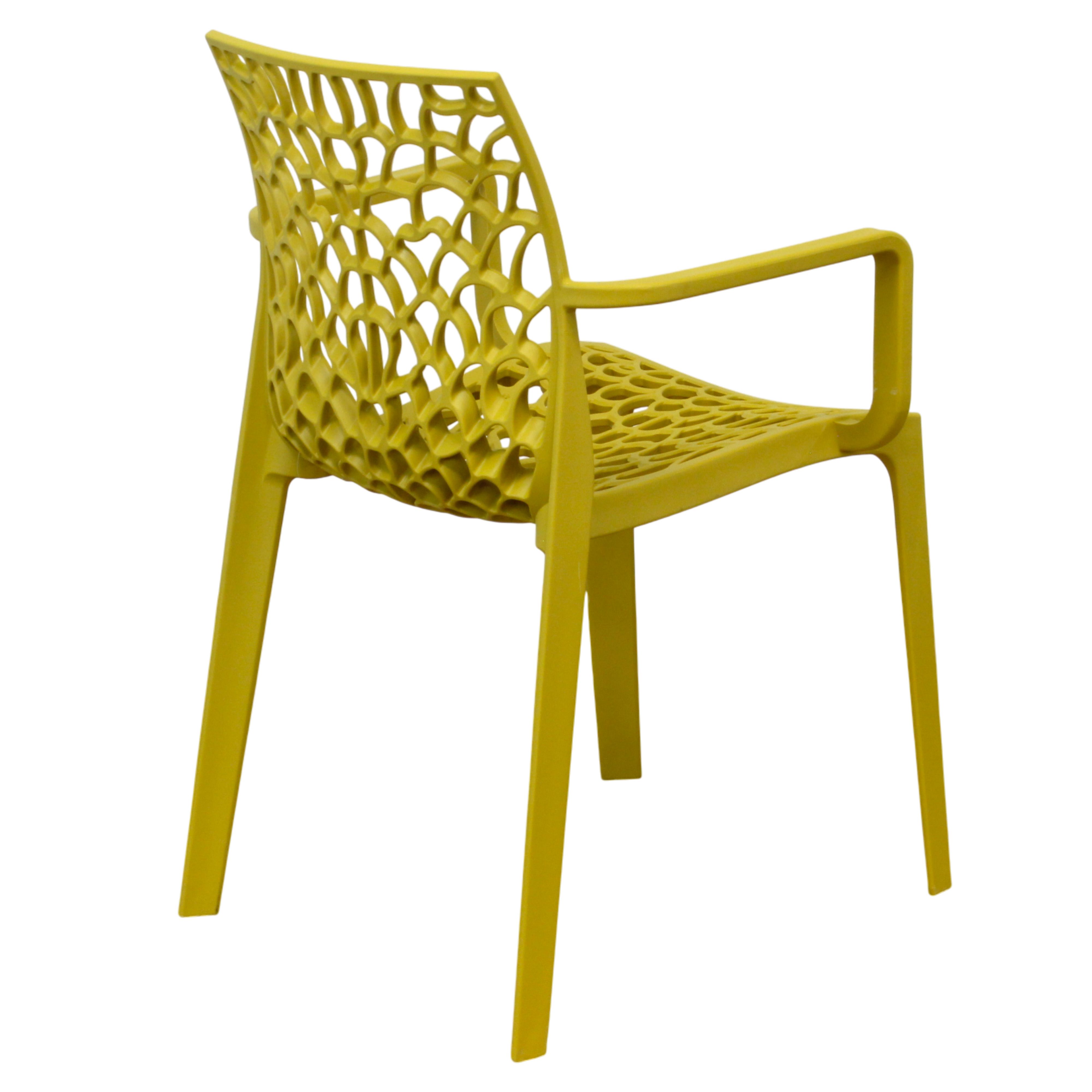 La poltrona moderna in polipropilene è disponibile in vari colori: rosso, grigio, bianco, verde, giallo e blu. Perfetta per interni ed esterni.