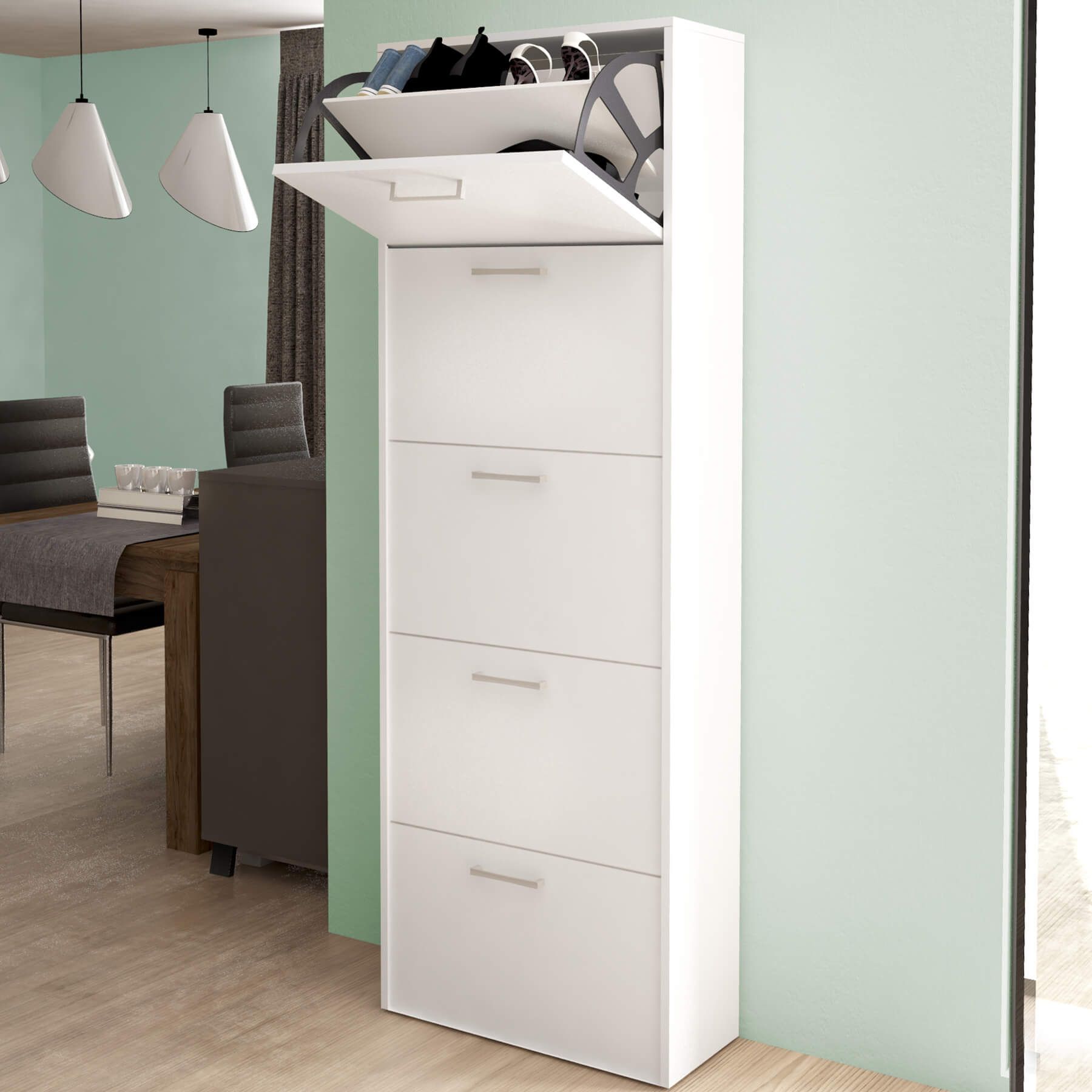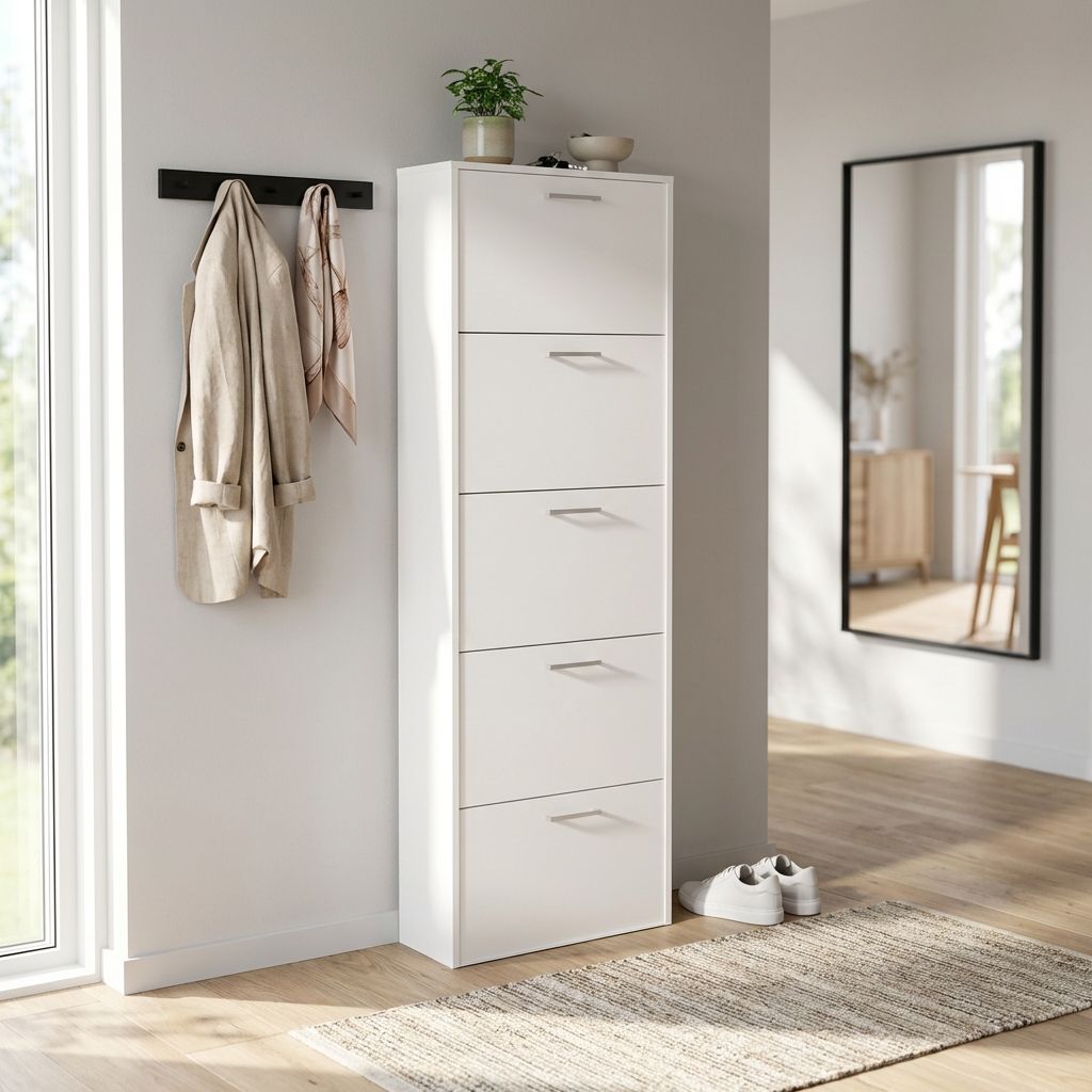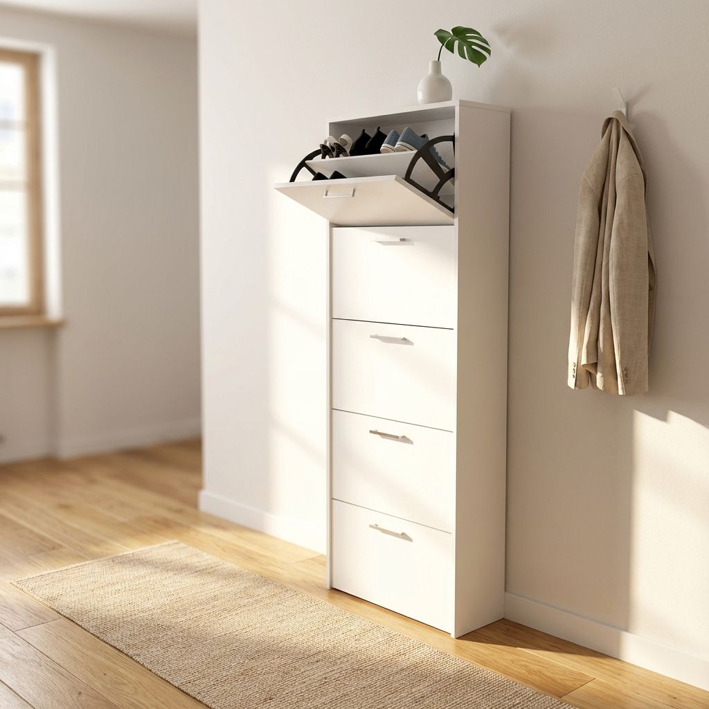 La scarpiera GINKO è disponibile in bianco, marrone, rovere e cemento