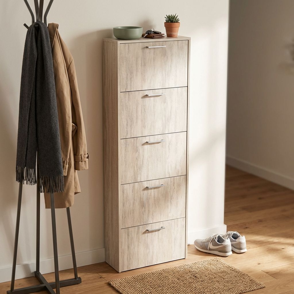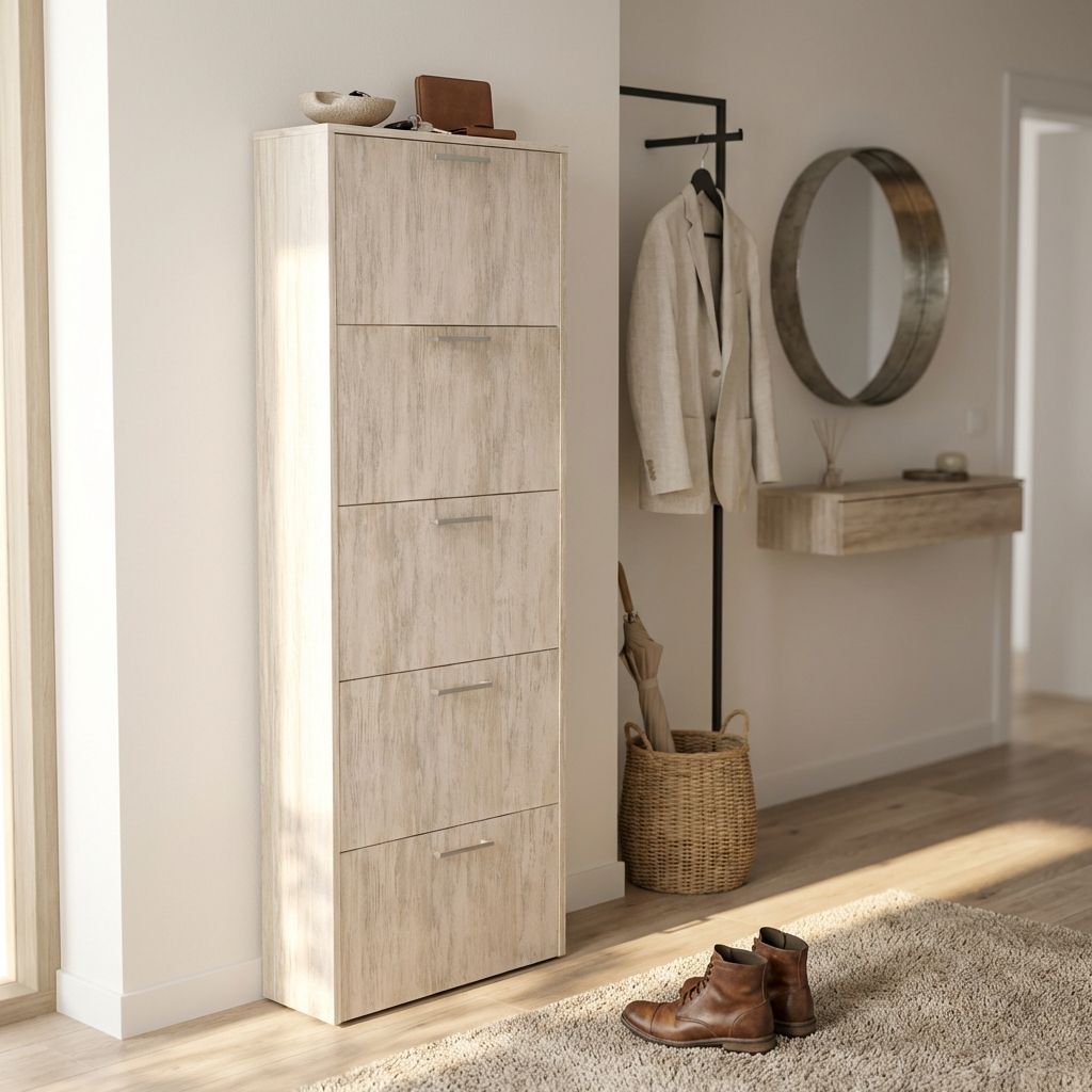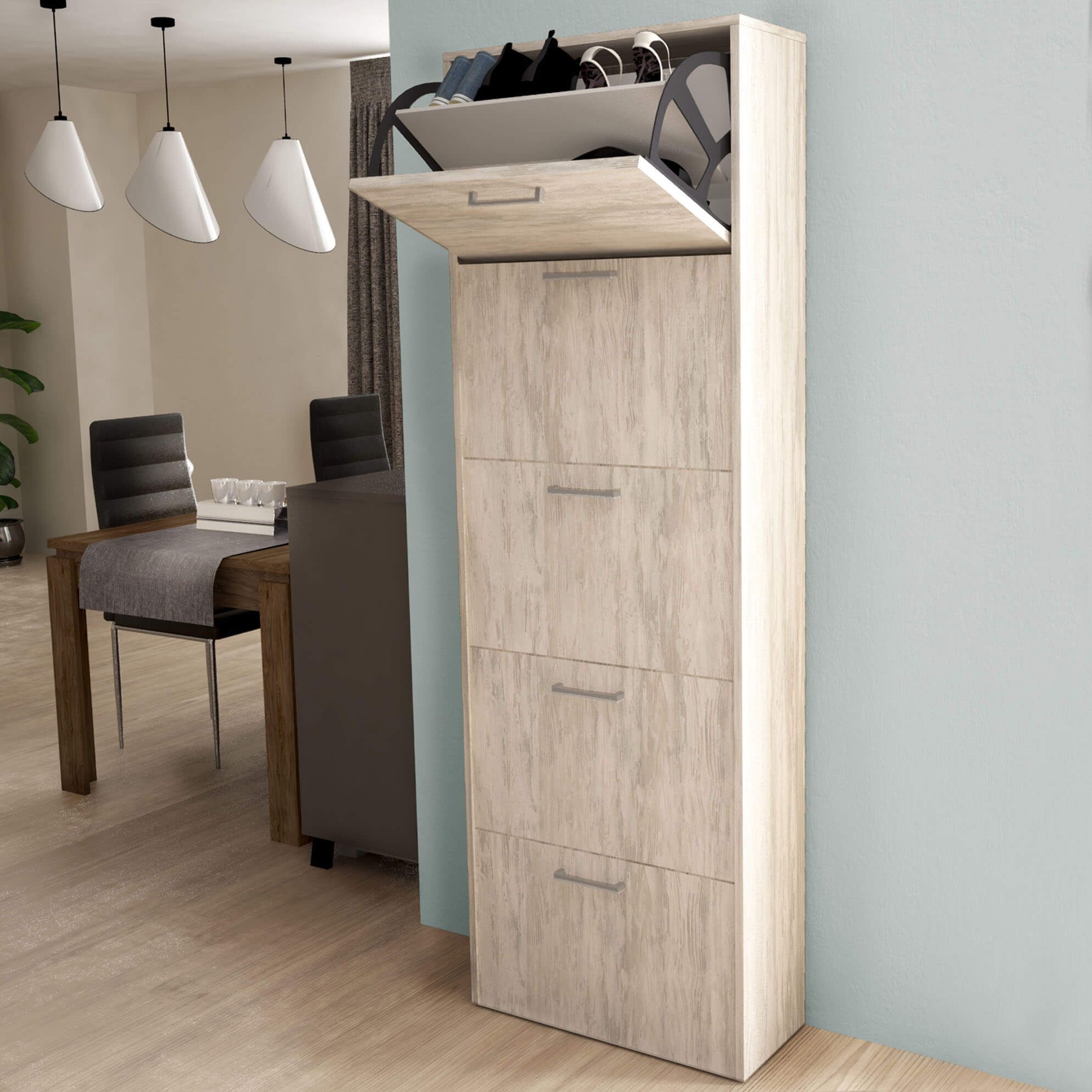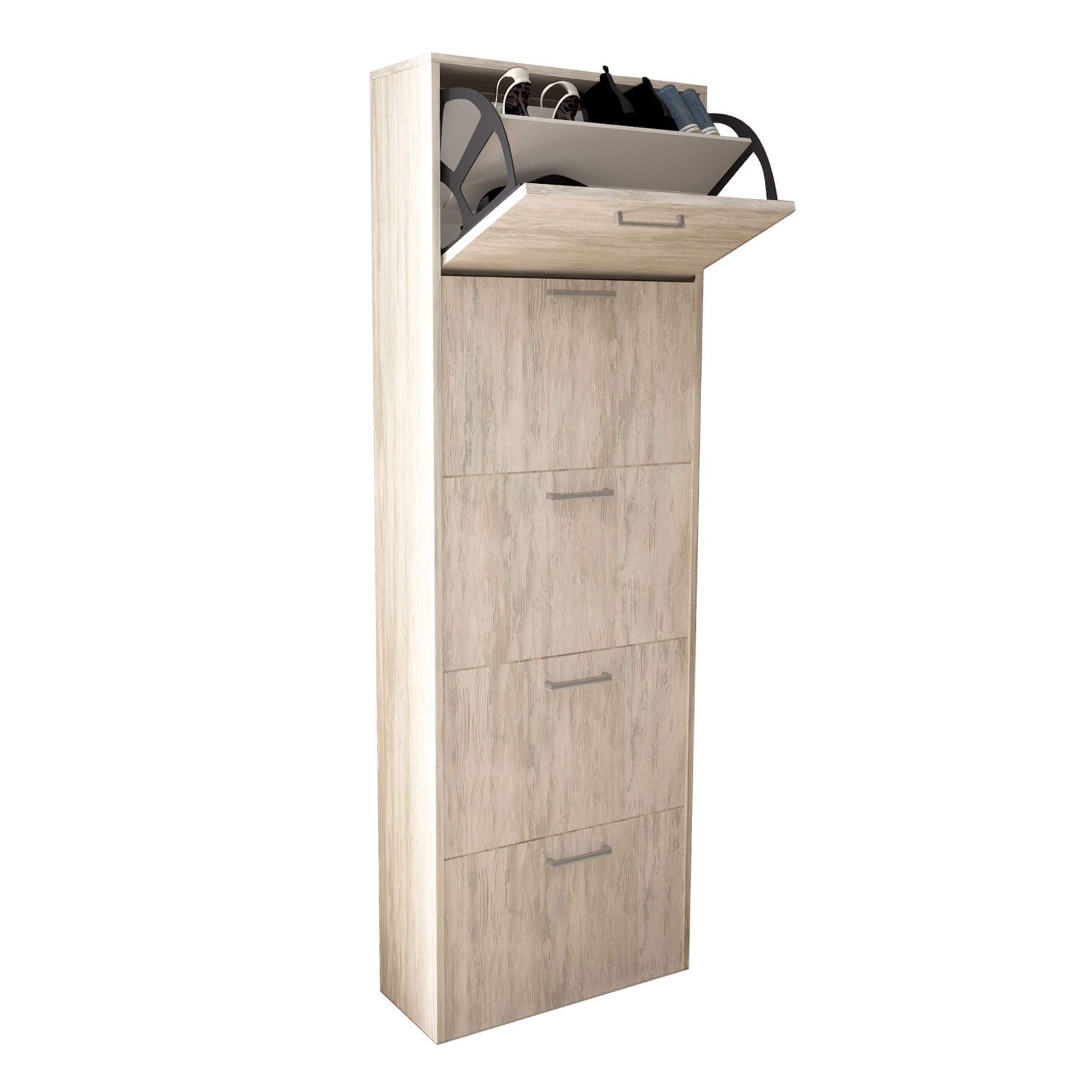 La scarpiera GINKO è disponibile in bianco, marrone, rovere e cemento