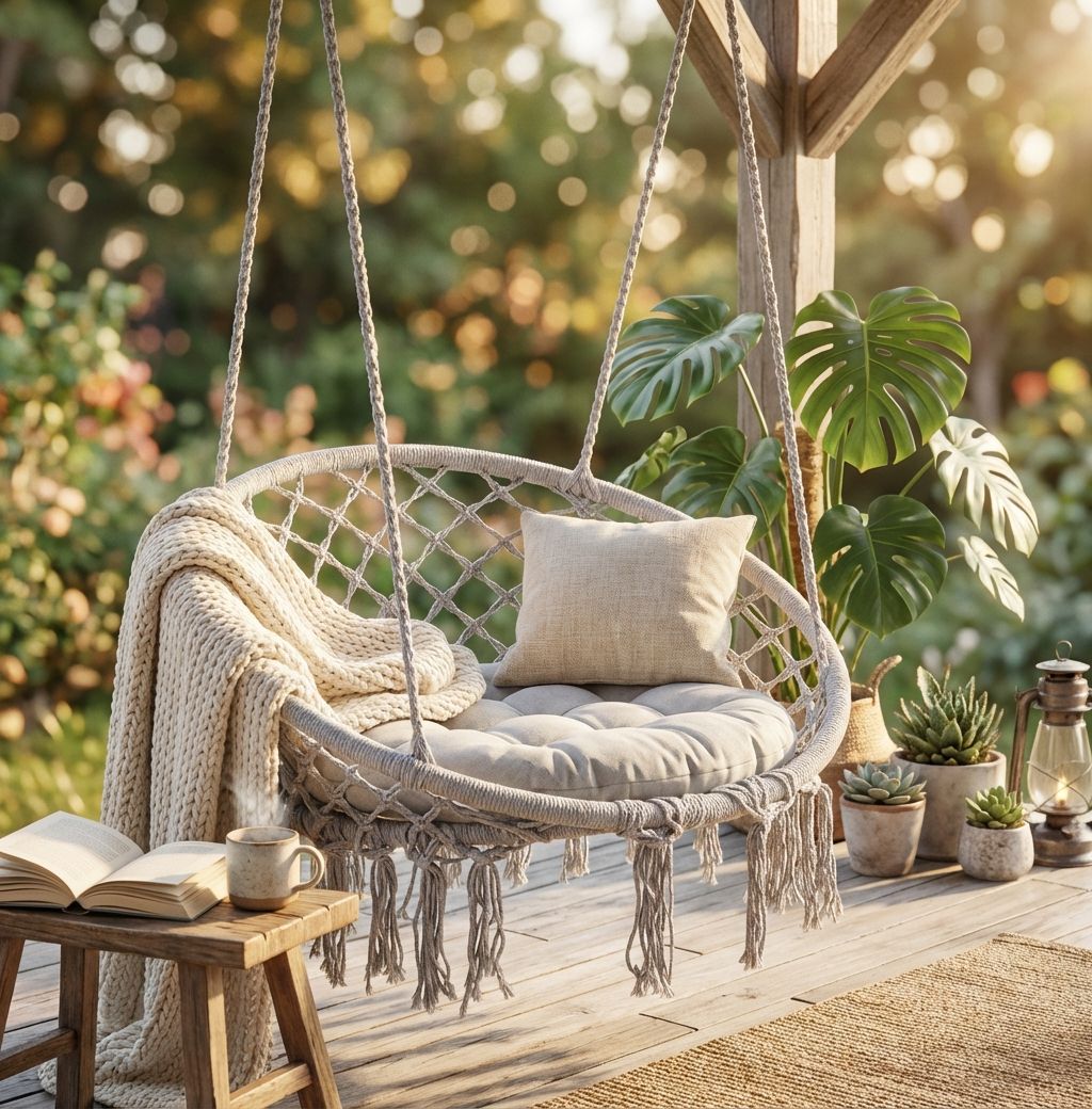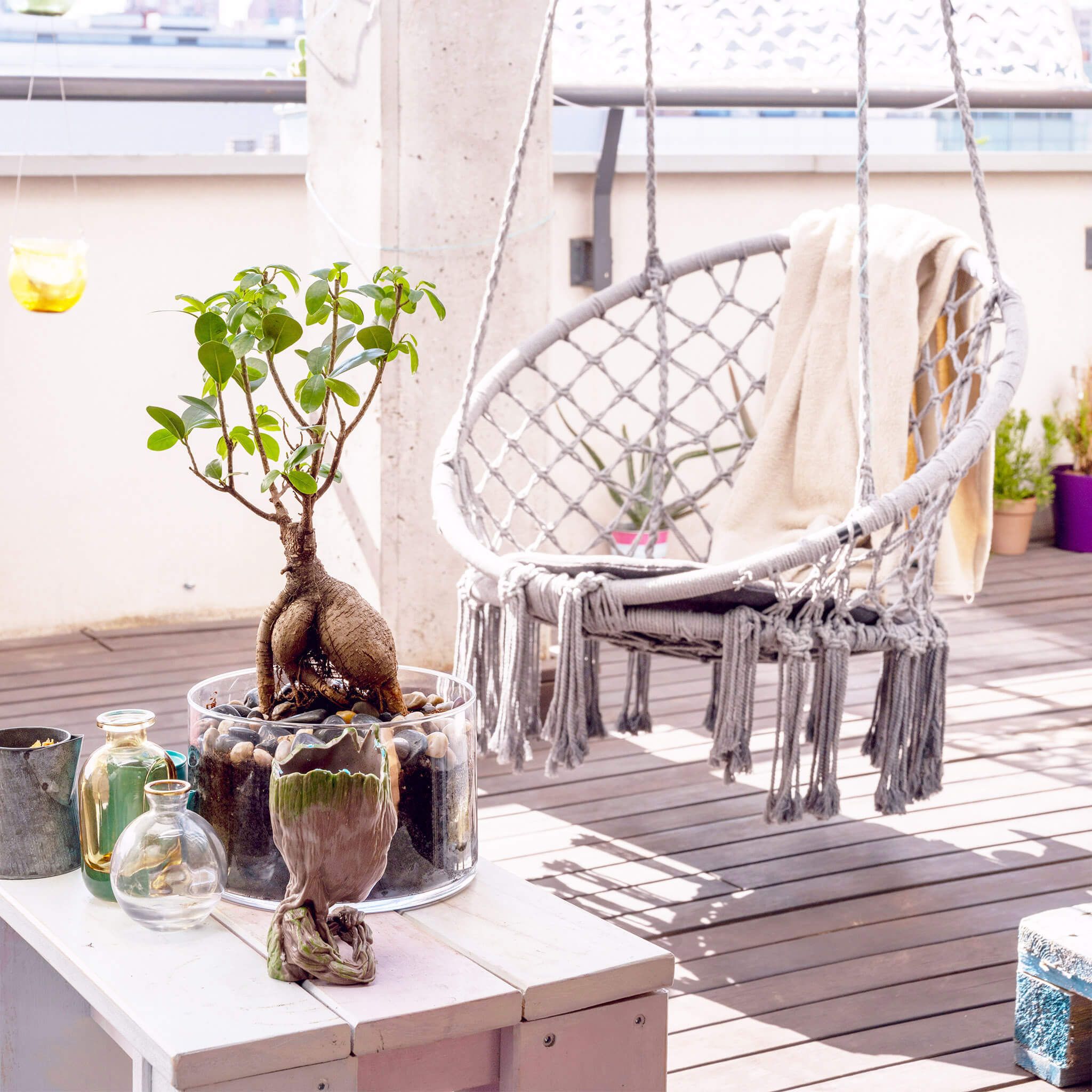 La sedia sospesa GREDY è disponibile in colore beige, grigio chiaro e grigio scuro