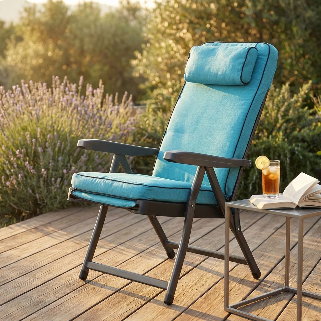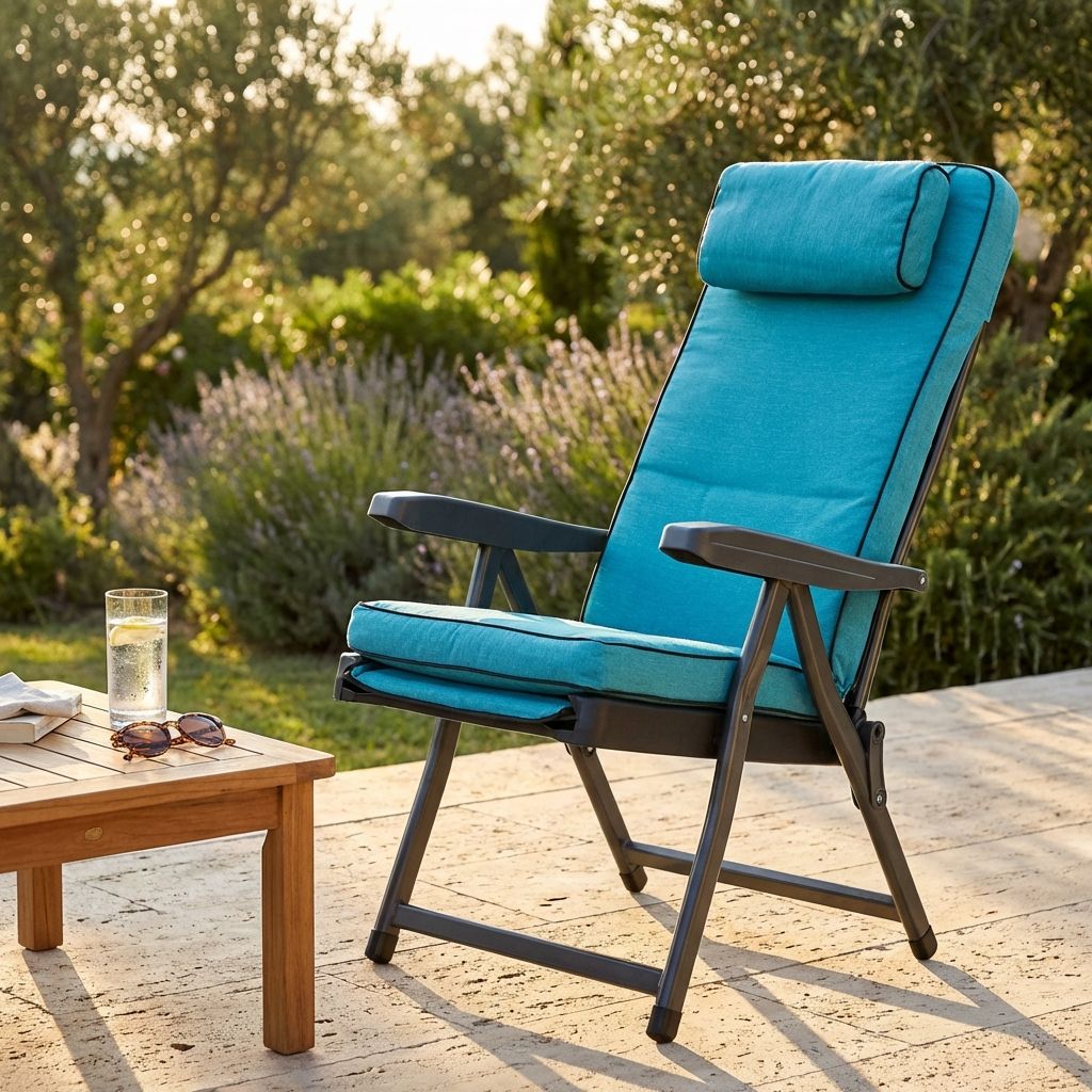 La poltrona sdraio HARPER è disponibile in colore grigio, beige, rosso e azzurro