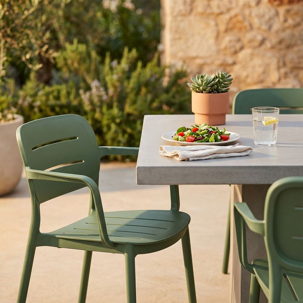 Poltrona impilabile in polipropilene dal design moderno ed ergonomico. Perfetta per interni ed esterni, è resistente agli agenti atmosferici, leggera e facile da pulire e ideale per ogni ambiente. Braccioli per un comfort ottimale. Disponibile in cinque eleganti colori: antracite, bianco, giallo, verde scuro e verde petrolio.