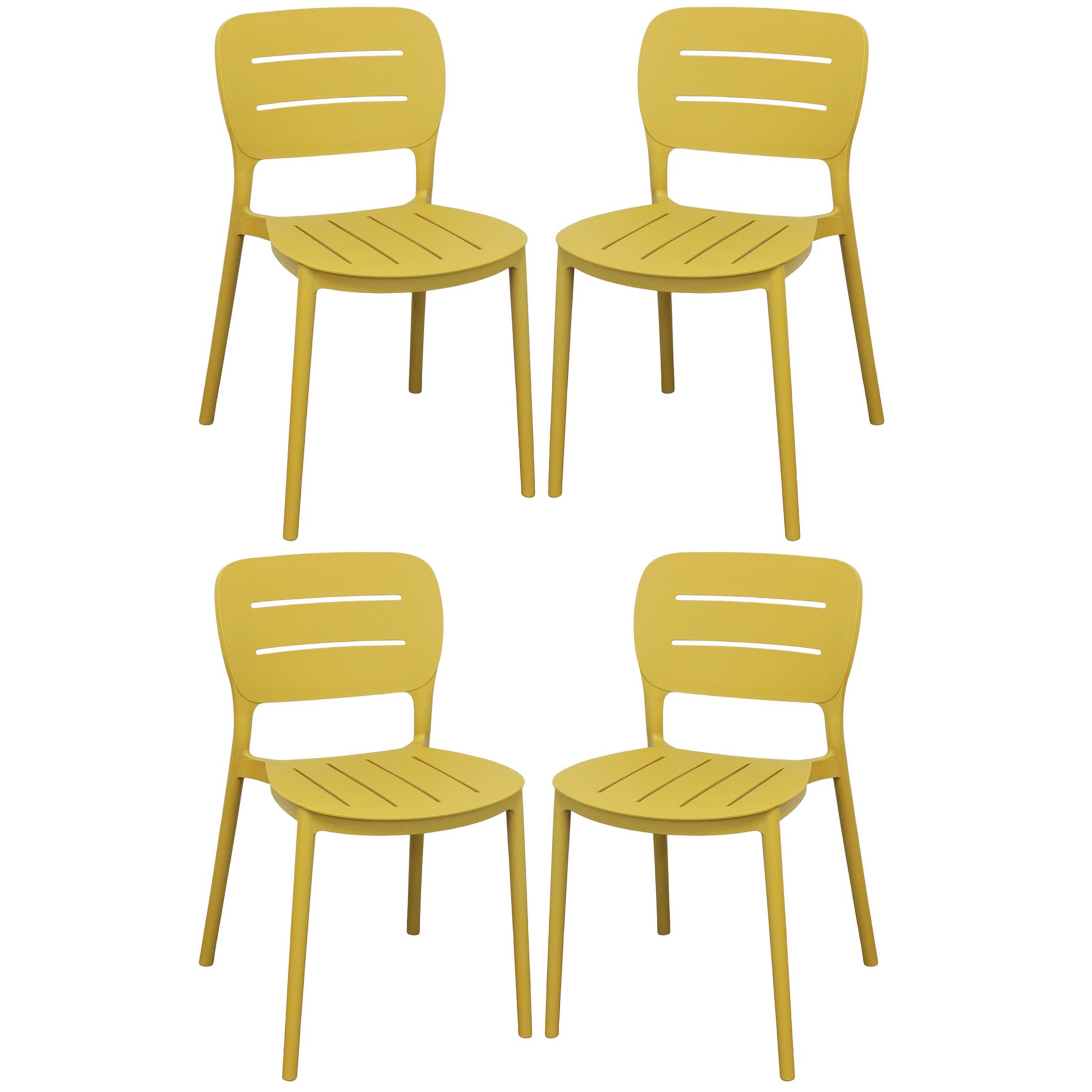 Sedia impilabile in polipropilene resistente, perfetta per ambienti interni ed esterni. Leggera, ergonomica e dotata di scanalature per maggiore ventilazione, offre comfort e durabilità. Disponibile in antracite, bianco, giallo, verde scuro e verde petrolio, è ideale per casa, giardini e attività commerciali.