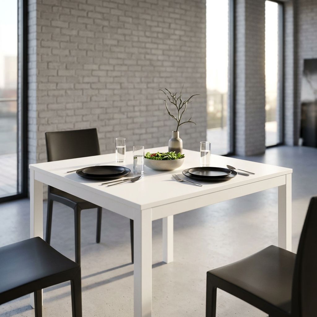 Il tavolo da pranzo moderno HERA è disponibile in 4 colori e in 5 dimensioni diverse: antracite, quercia chiaro, effetto marmo e bianco, da 110x70 cm, 120x80 cm, 140x80 cm, 160x90 cm e 90x90 cm.
