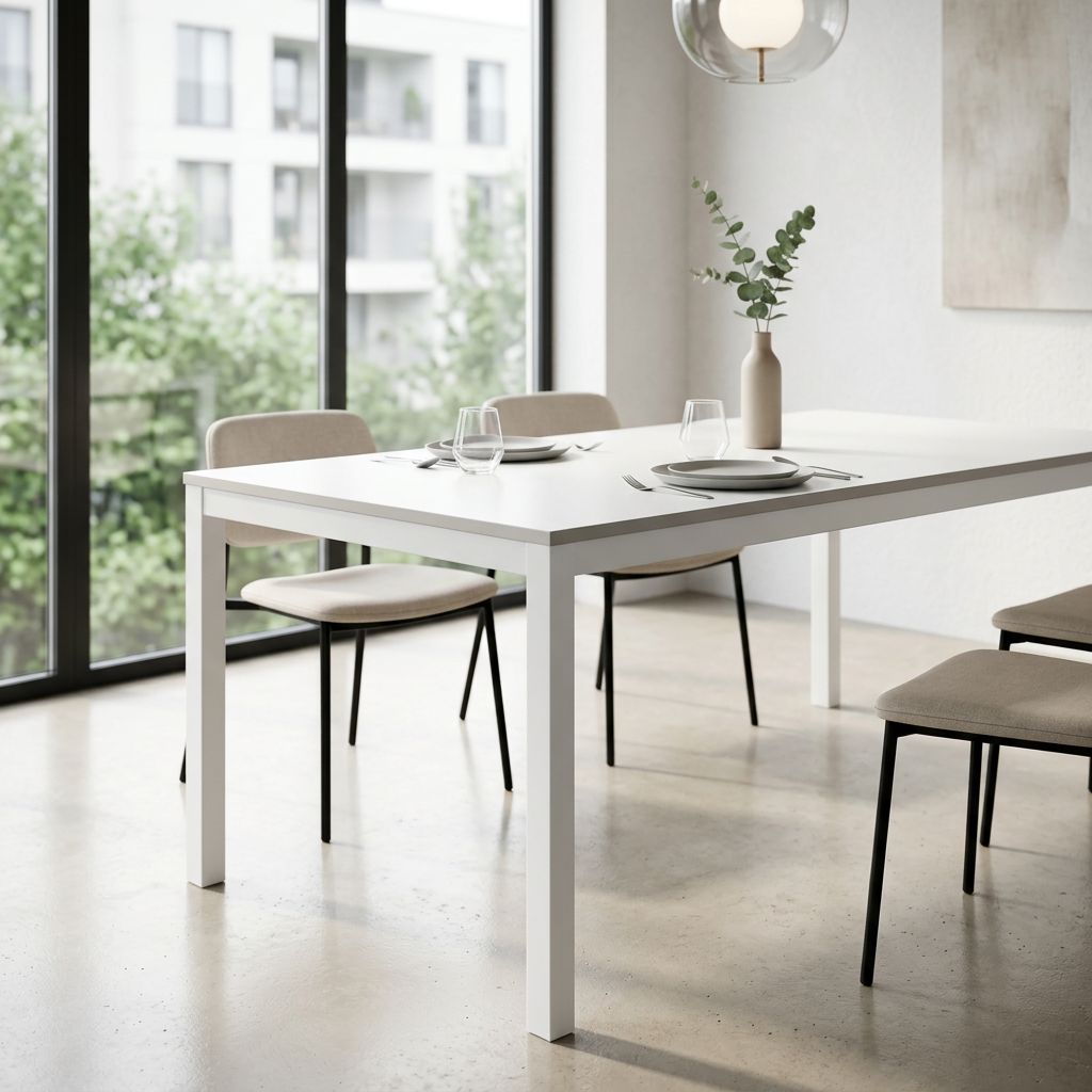 Il tavolo da pranzo moderno HERA è disponibile in 4 colori e in 5 dimensioni diverse: antracite, quercia chiaro, effetto marmo e bianco, da 110x70 cm, 120x80 cm, 140x80 cm, 160x90 cm e 90x90 cm.