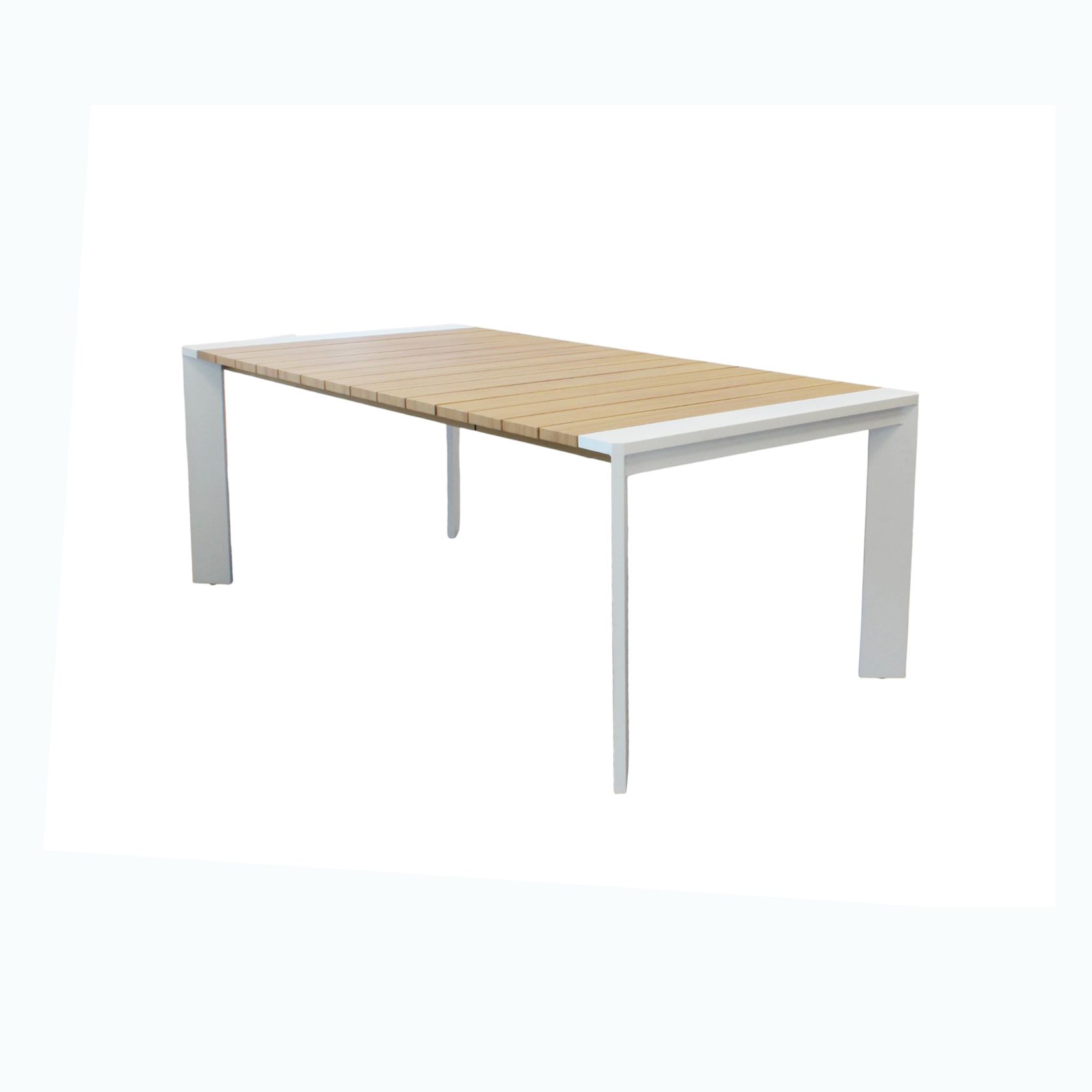 Questo tavolo allungabile è la soluzione perfetta per chi cerca un complemento d’arredo raffinato ma pratico. La struttura in alluminio effetto legno unisce la leggerezza e la resistenza del metallo con il calore estetico del legno, creando un pezzo d’arredo ideale per terrazze, giardini e verande. Il piano, anch’esso in alluminio, è realizzato con doghe effetto legno, con un dettaglio distintivo: la prima e l’ultima doga riprendono il colore delle gambe, creando un raffinato contrasto cromatico. La pratica allunga laterale consente di estendere facilmente il tavolo, offrendo più spazio per pranzi all’aperto e cene conviviali. Disponibile in bianco o antracite, questo tavolo si adatta a diversi stili di arredamento, dal minimalista al contemporaneo. Grazie ai materiali è resistente agli agenti atmosferici e facile da pulire, garantendo durata nel tempo. Questo tavolo allungabile è l’elemento ideale per creare un ambiente accogliente e sofisticato all’aria aperta.