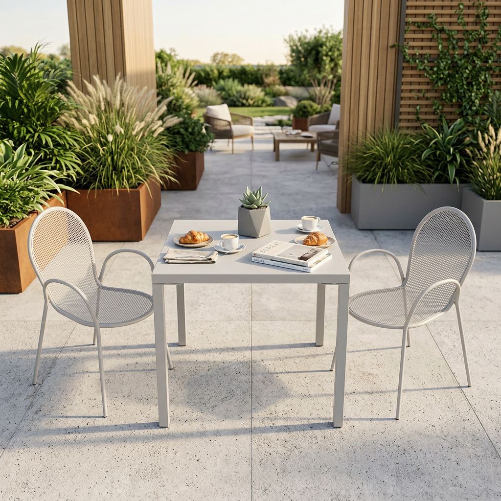 Il set da giardino INDEX è disponibile in colore bianco, tortora e taupe puoi scegliere di acquistarlo in forma quadrata o rotonda
