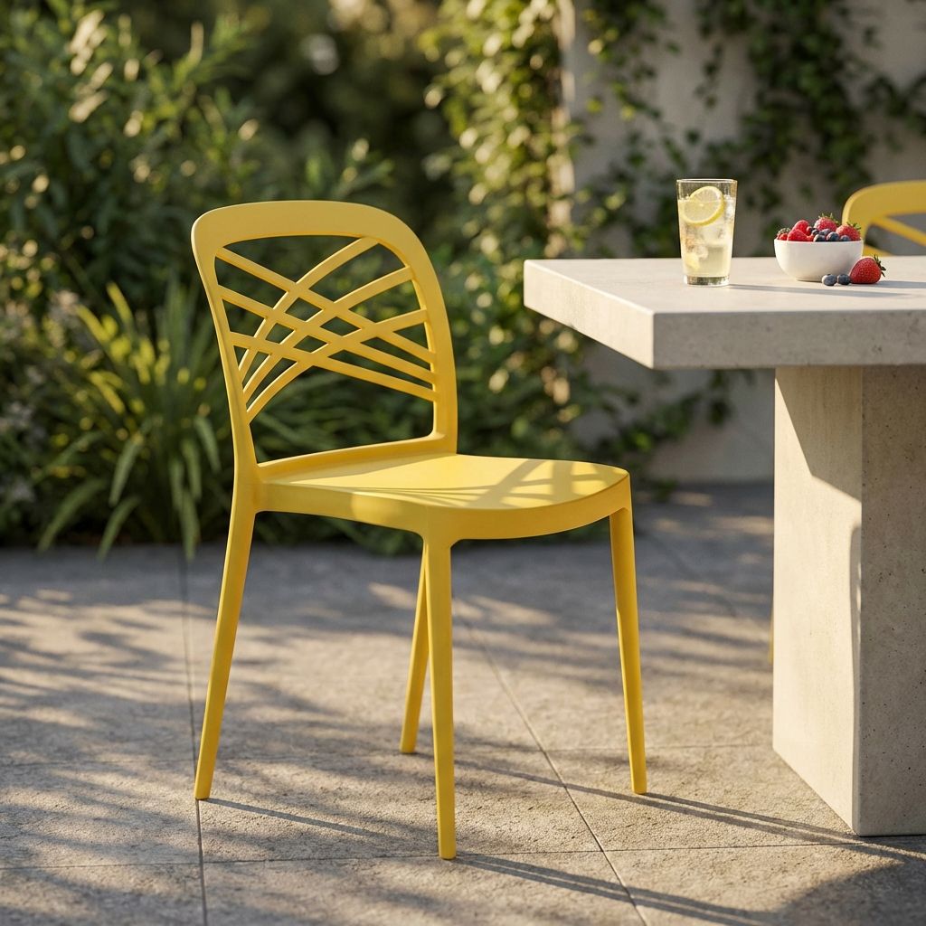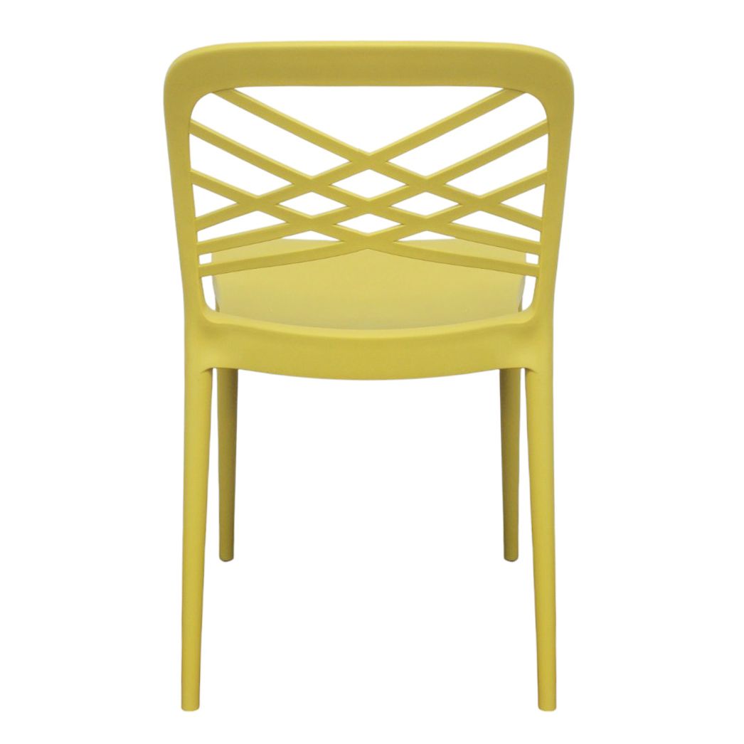 Questa sedia impilabile in polipropilene è la soluzione ideale per arredare con eleganza e funzionalità. Lo schienale con intreccio geometrico dona un tocco distintivo ela struttura leggera ma resistente la rende perfetta per uso interno ed esterno. Disponibile in vari colori