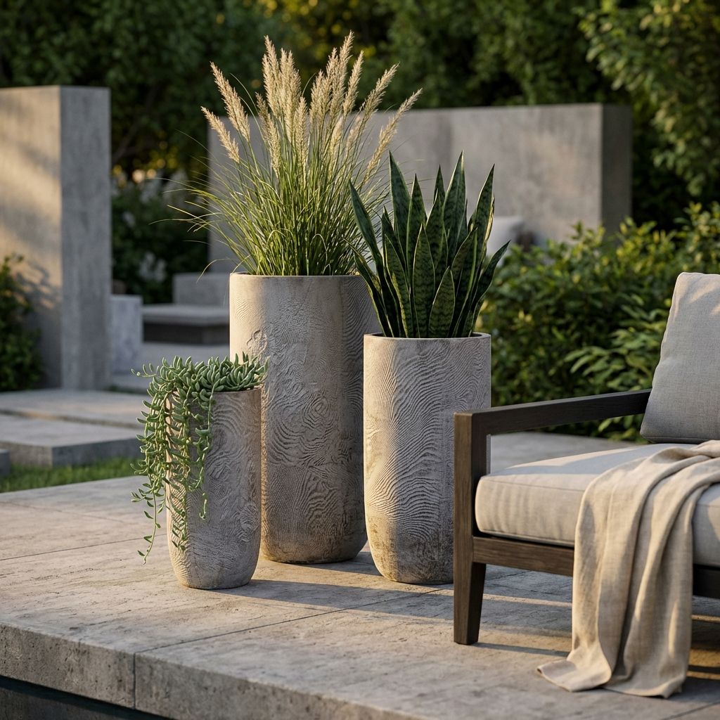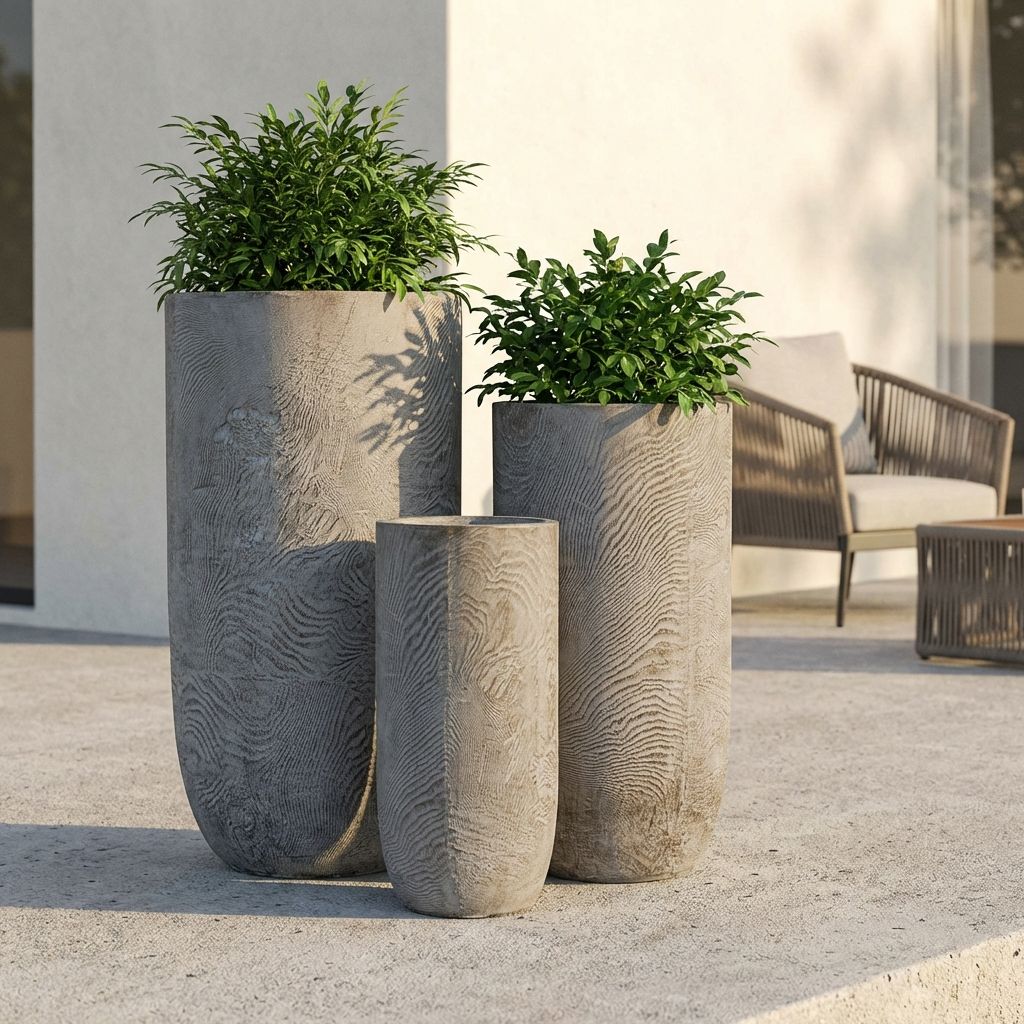 Vuoi un tocco di eleganza per la tua casa o il tuo giardino? Allora lascia che IRENE prenda il comando! Questi fantastici vasi di ceramica in fibra di argilla, di colore grigio, con la loro forma cilindrica e incisioni striate, sono il complemento perfetto per creare un'atmosfera raffinata sia dentro che fuori casa. Che siano usati per fiori o come pezzi d'arredo per il tuo salotto, IRENE conquisterà gli occhi di tutti con la sua personalità.