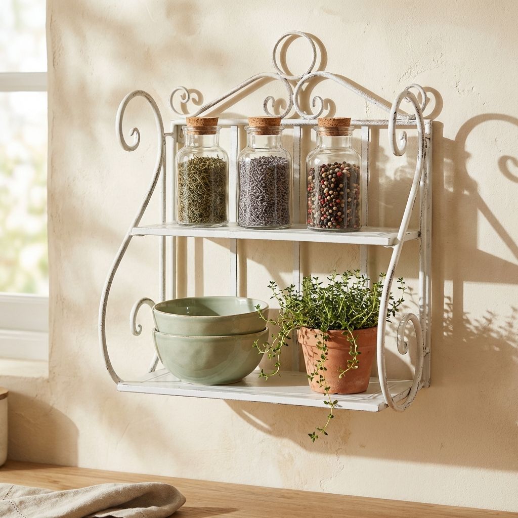 La mensola ISABELLE è un gioiello della nostra collezione di complementi d'arredo in stile provenzale. Perfetta per la cucina, il bagno o come tocco romantico all'interno o all'esterno di una parete. Realizzata in metallo verniciato, conserva un aspetto antico grazie ai segni di usura volutamente lasciati durante la produzione. Mostra il fascino unico dello shabby chic, una decorazione affascinante che sembra segnata dal tempo.