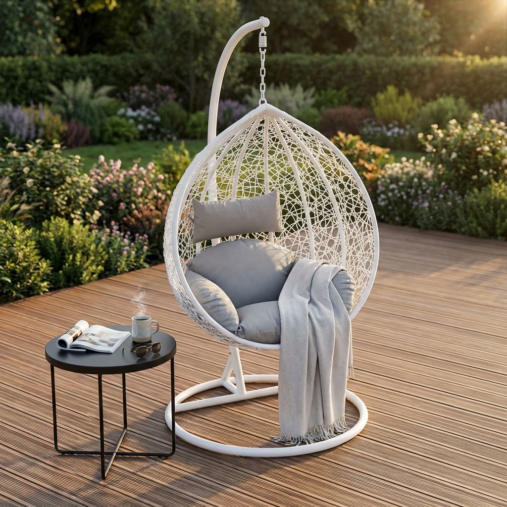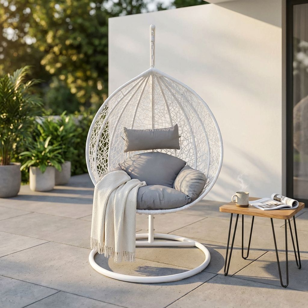 La sedia sospesa JAKI è disponibile in colore grigio e marrone e biancotest a