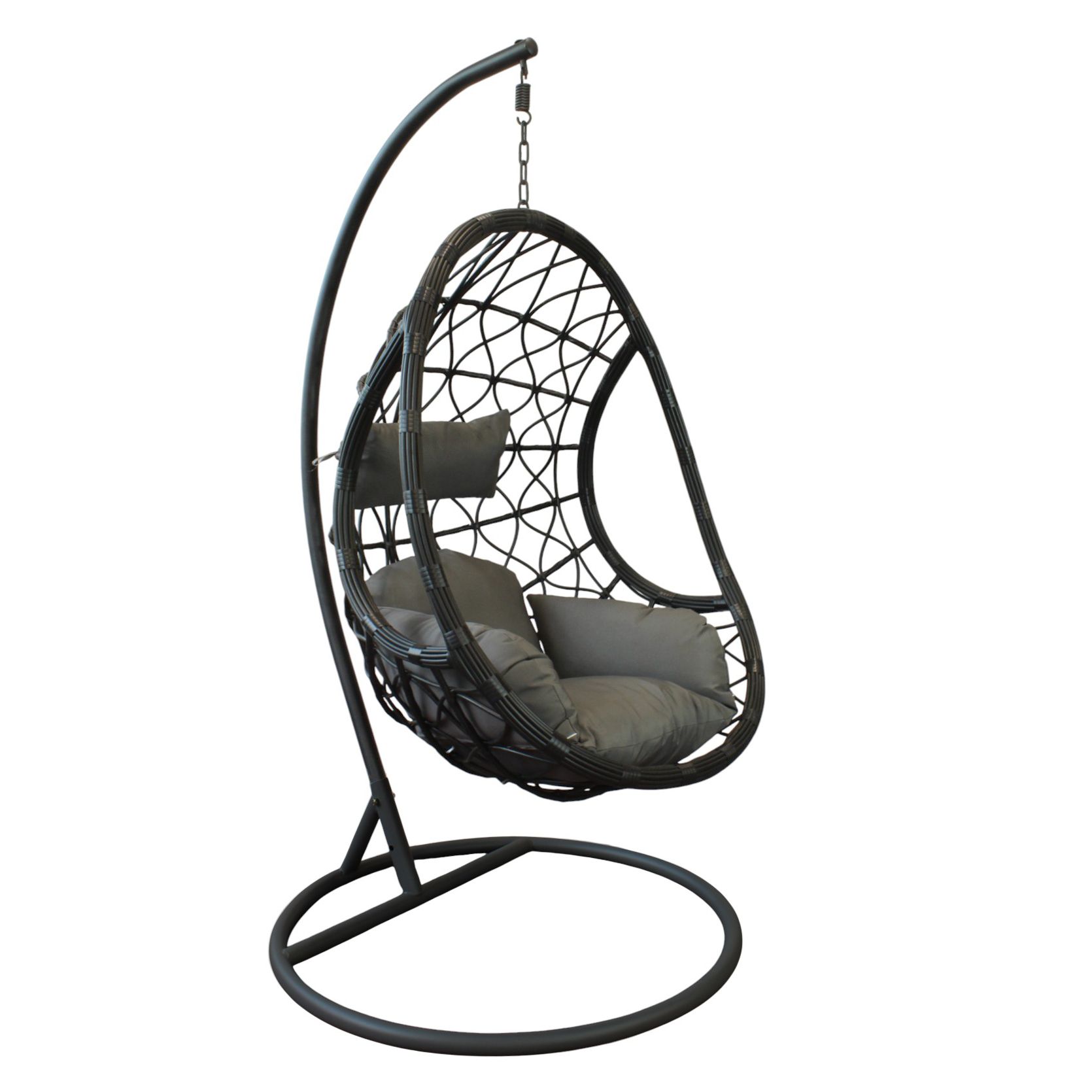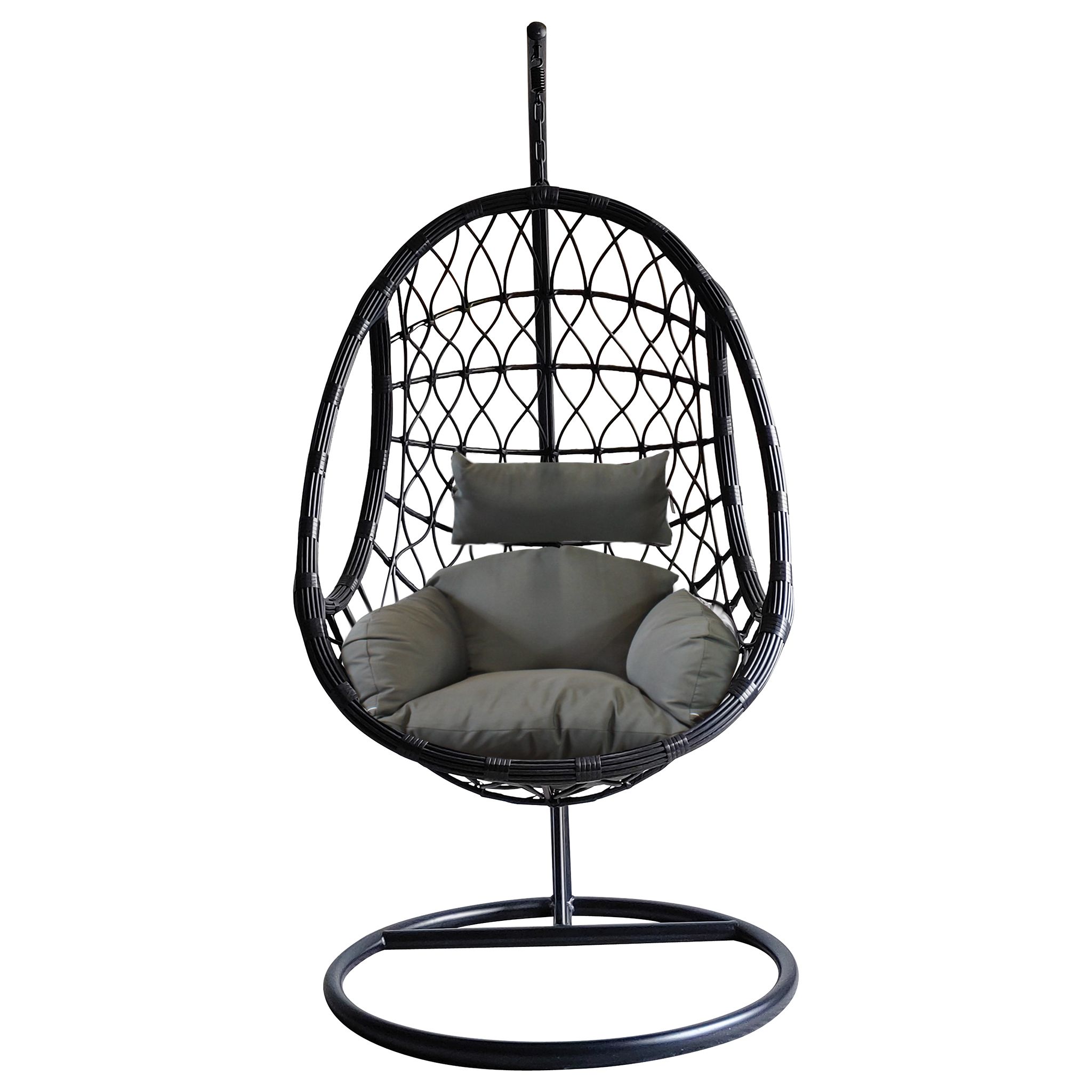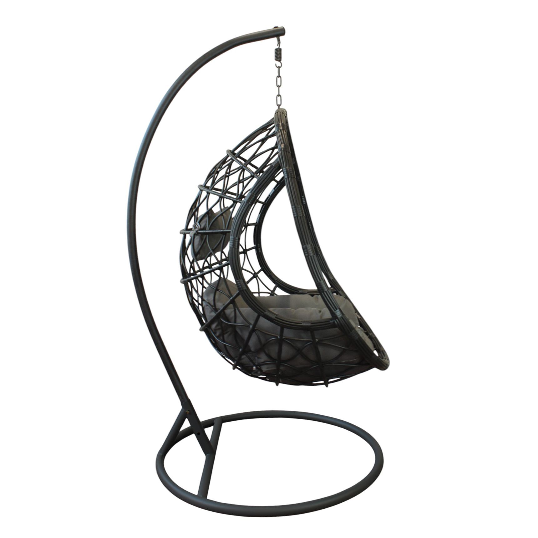 Dondolo sospeso dal design moderno e accogliente, con struttura in metallo resistente e intreccio in wicker raffinato. La seduta ampia e avvolgente, completata da soffici cuscini in poliestere in tinta, offre un comfort impareggiabile. Perfetto per giardini, terrazze o portici, aggiunge un tocco di eleganza e relax a qualsiasi spazio outdoor.