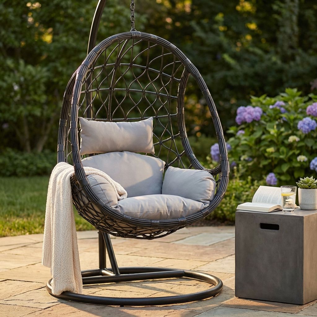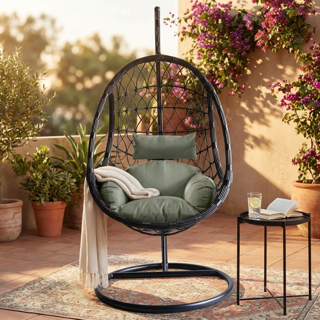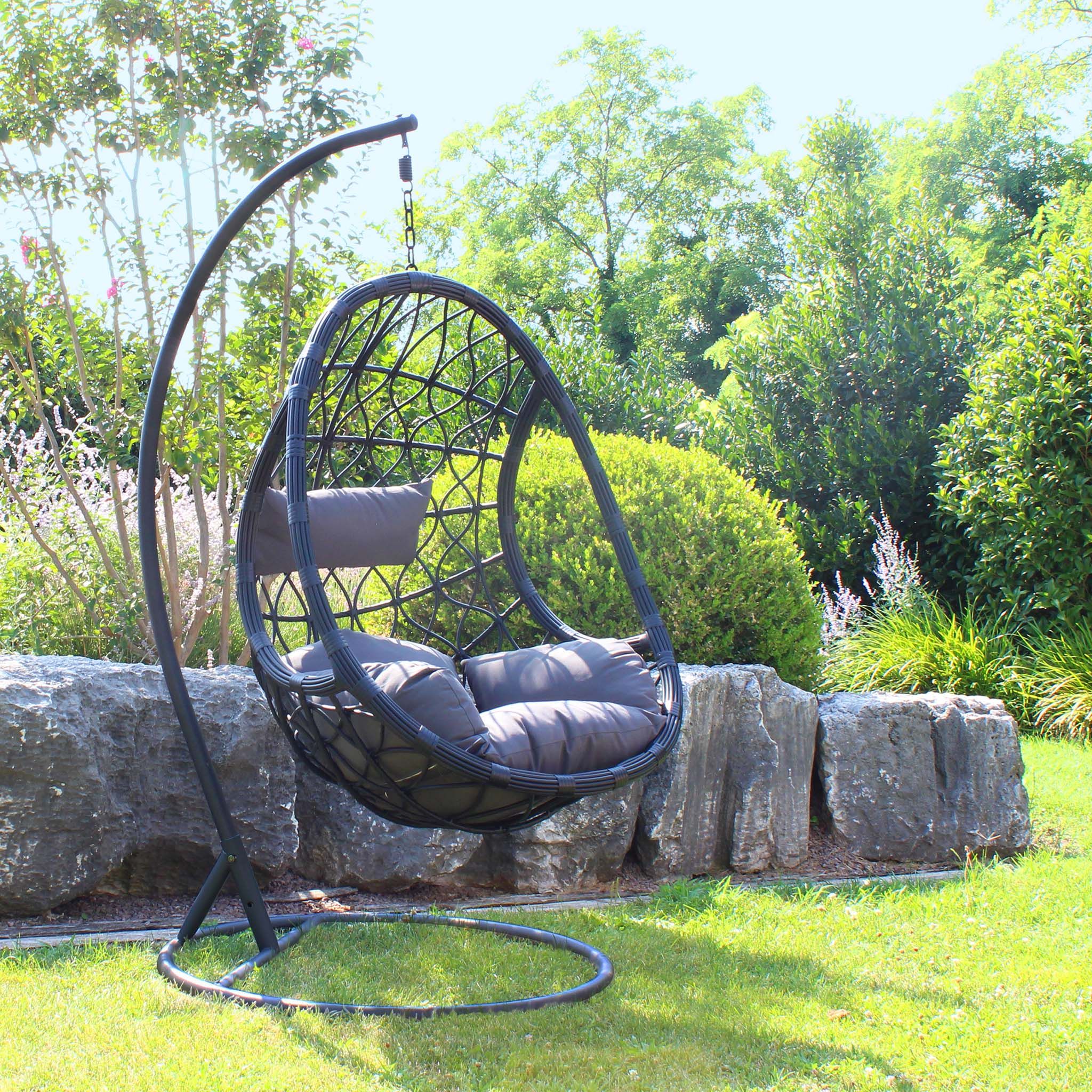 Dondolo sospeso dal design moderno e accogliente, con struttura in metallo resistente e intreccio in wicker raffinato. La seduta ampia e avvolgente, completata da soffici cuscini in poliestere in tinta, offre un comfort impareggiabile. Perfetto per giardini, terrazze o portici, aggiunge un tocco di eleganza e relax a qualsiasi spazio outdoor.